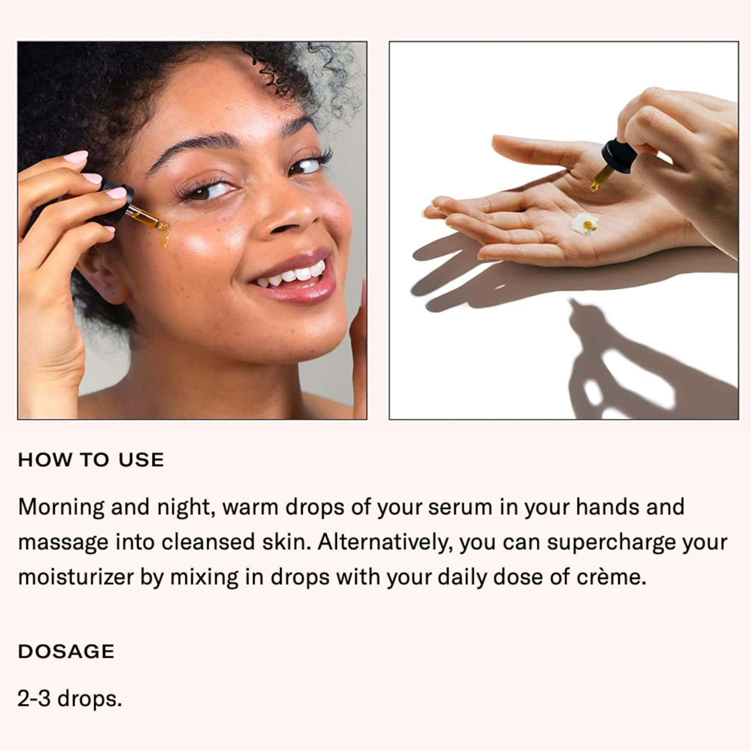 - Application Uses & Tips: For an intensive solution, apply 2-3 drops directly on cleansed skin. Or supercharge your moisturizer and mix in 2-3 drops with your daily dose of crème.