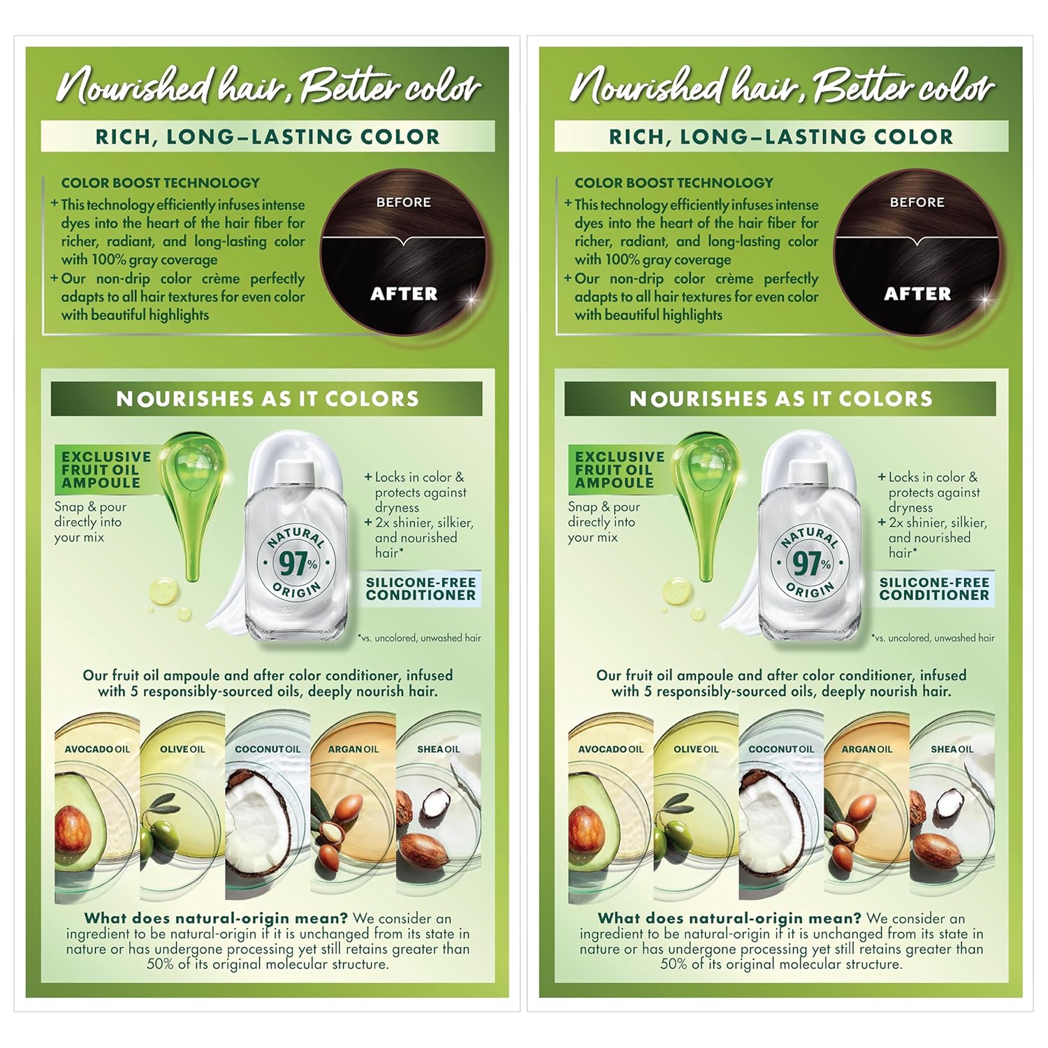 - Hair Dye Kit: The only hair color with a separate fruit oil ampoule that you snap & pour directly into the mix; Follow hair dye with our after color hair conditioner, infused with a blend of 5 fruit oils: avocado, olive, shea, argan & coconut oil