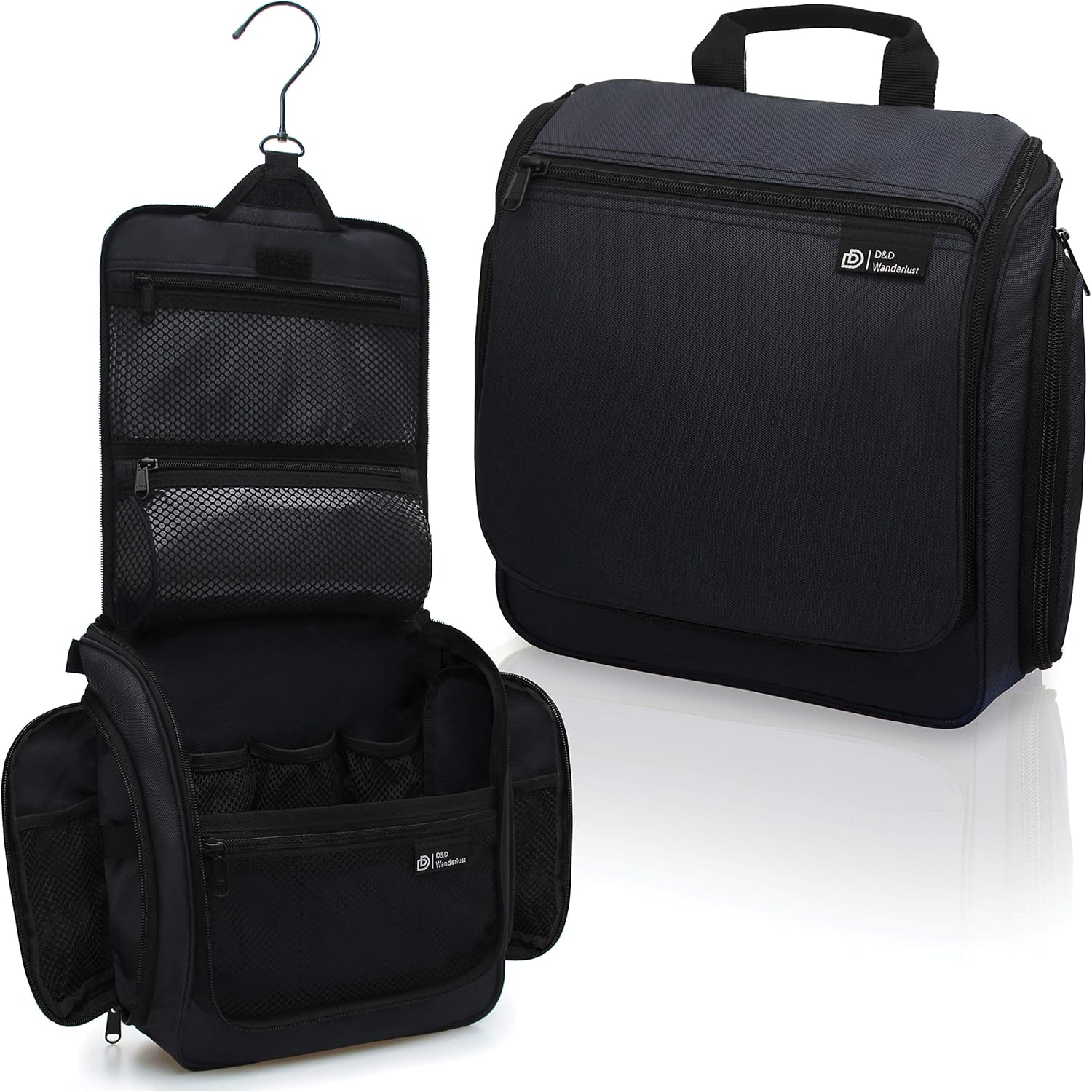D&D Hanging Travel Toiletry Bag for Men and Women – Large Cosmetics, Makeup and Toiletries Organizer Kit with 10 Compartments, YKK Zippers, XXL Metal Swivel Hook, Water-Resistant Nylon