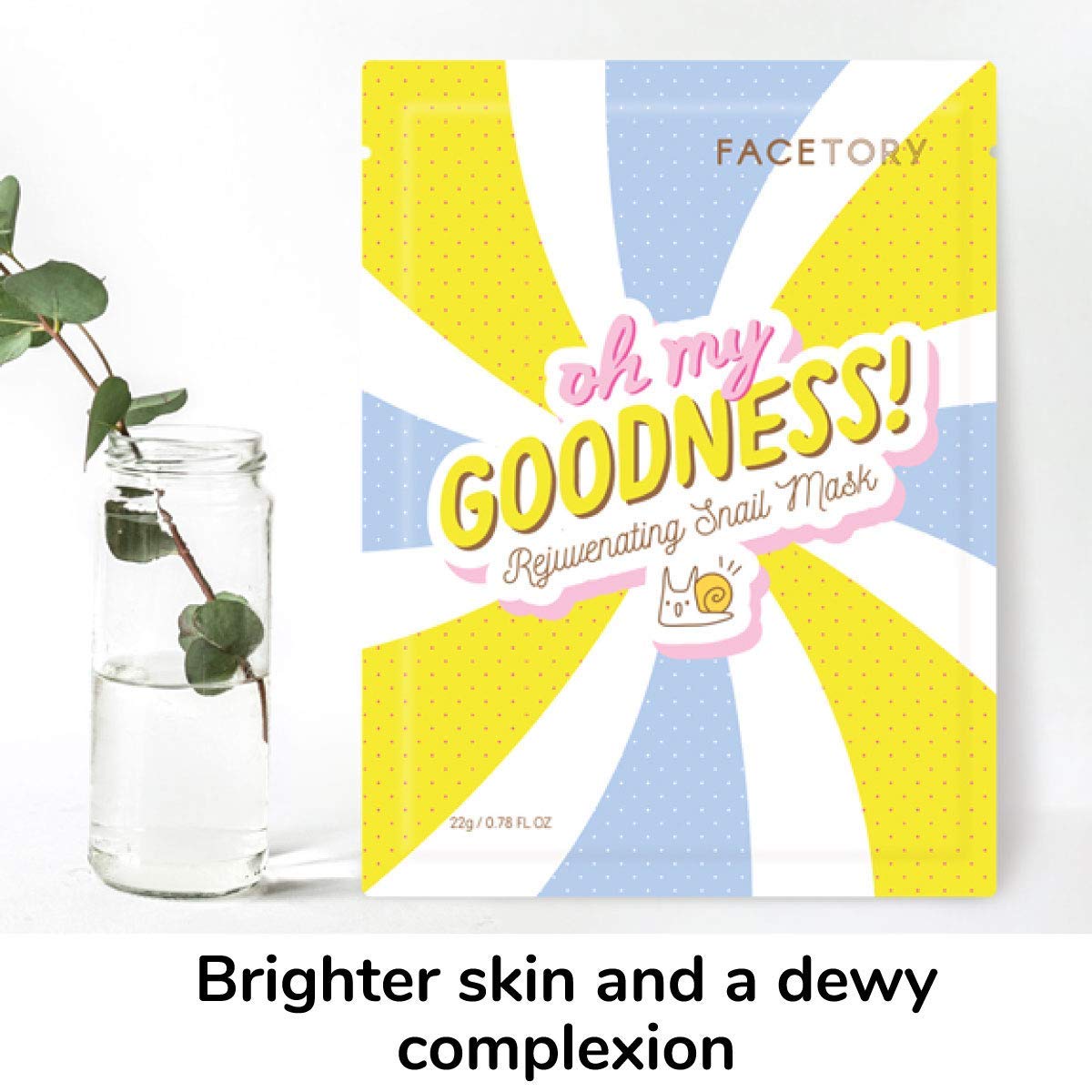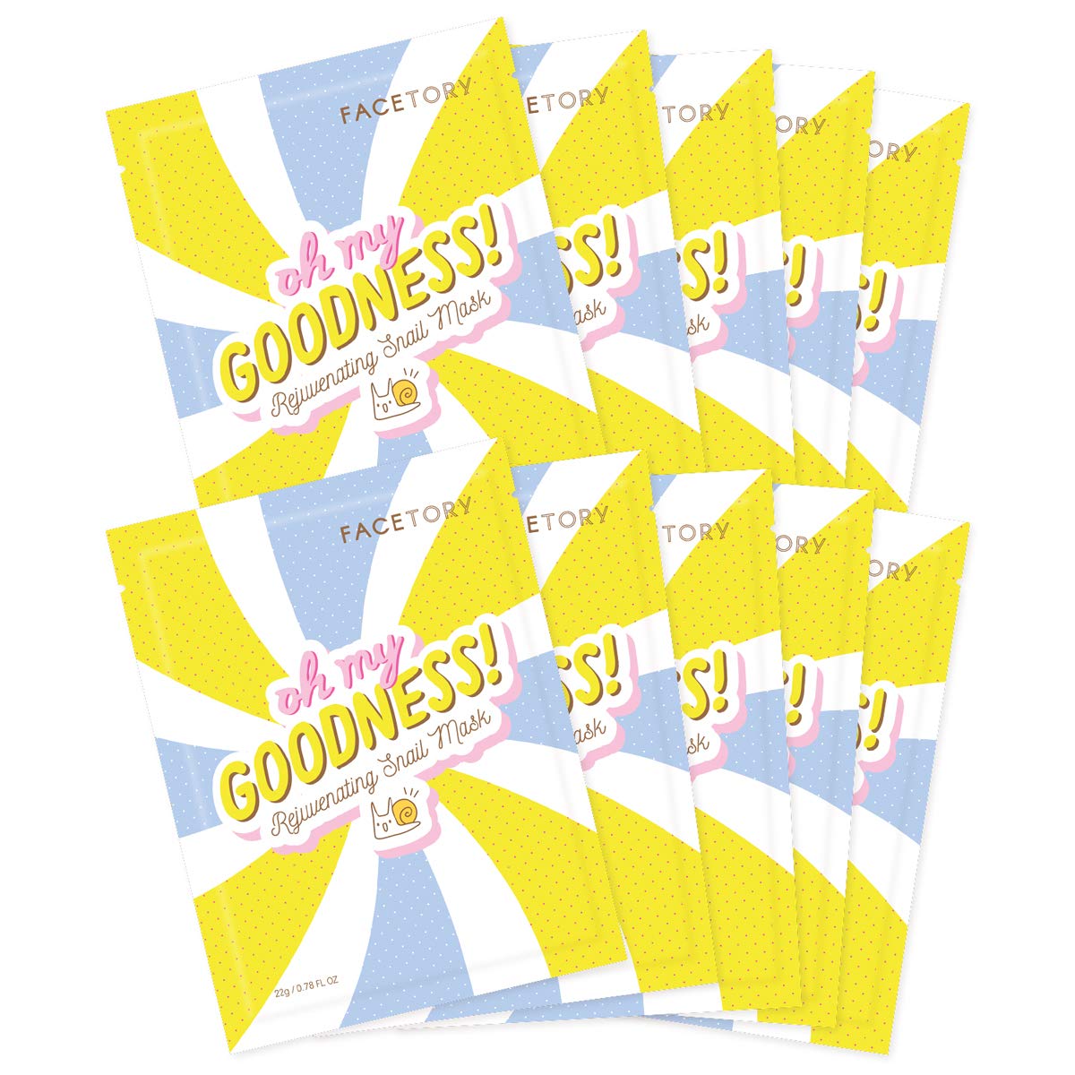 FACETORY K Beauty Face Mask Skin Care - OH MY GOODNESS REJUVENATING SNAIL Sheet Mask with Snail Essence & Hyaluronic Acid | Hydrate, Soothe, Seal in Moisture (10 Pack)