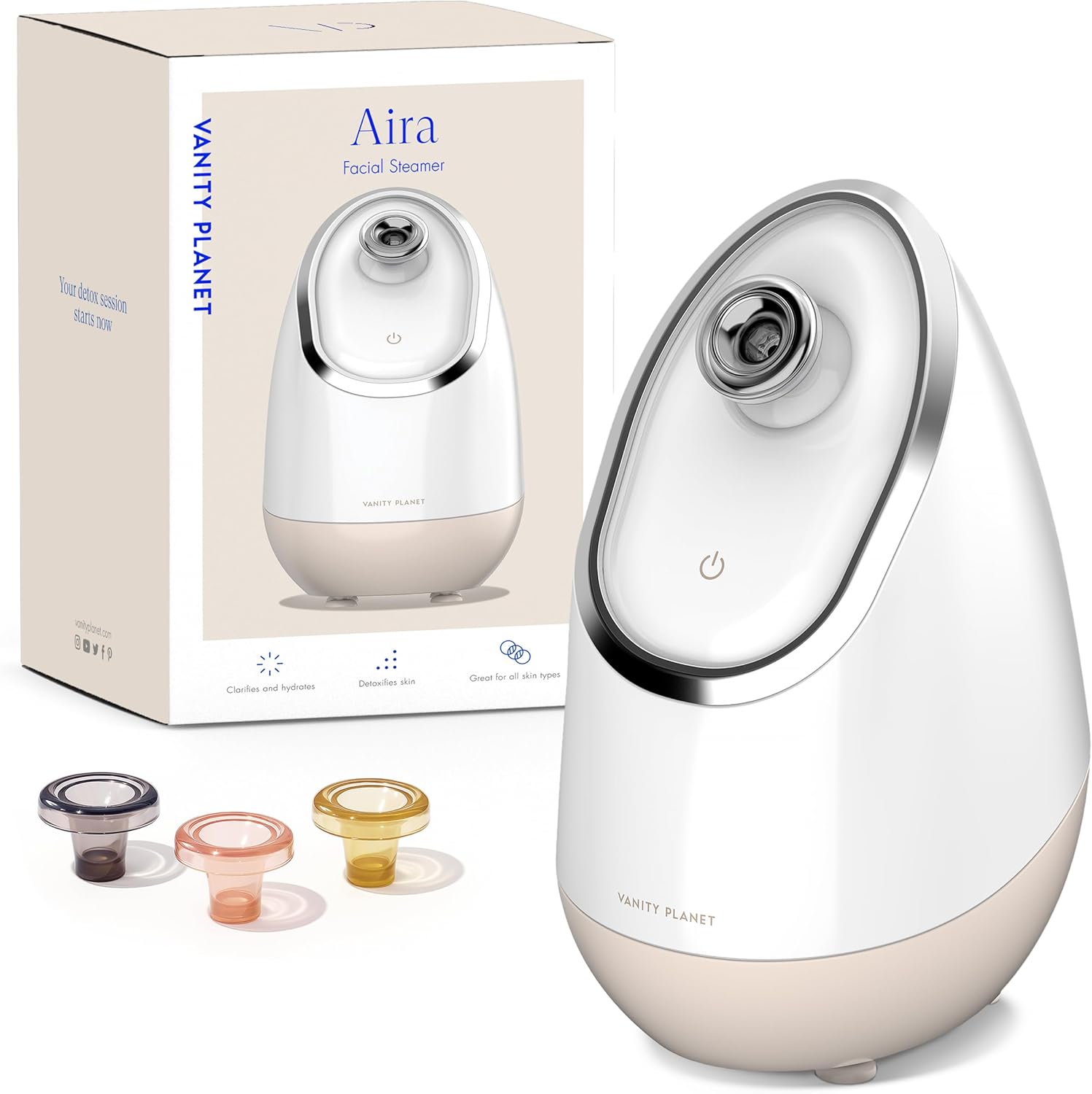 Vanity Planet Aira Ionic Facial Steamer (Beige) - Pore Cleaner That Detoxifies, Cleanses and Moisturizes - Adjustable Nozzle, Water Tank with 3 Essential Oil Baskets