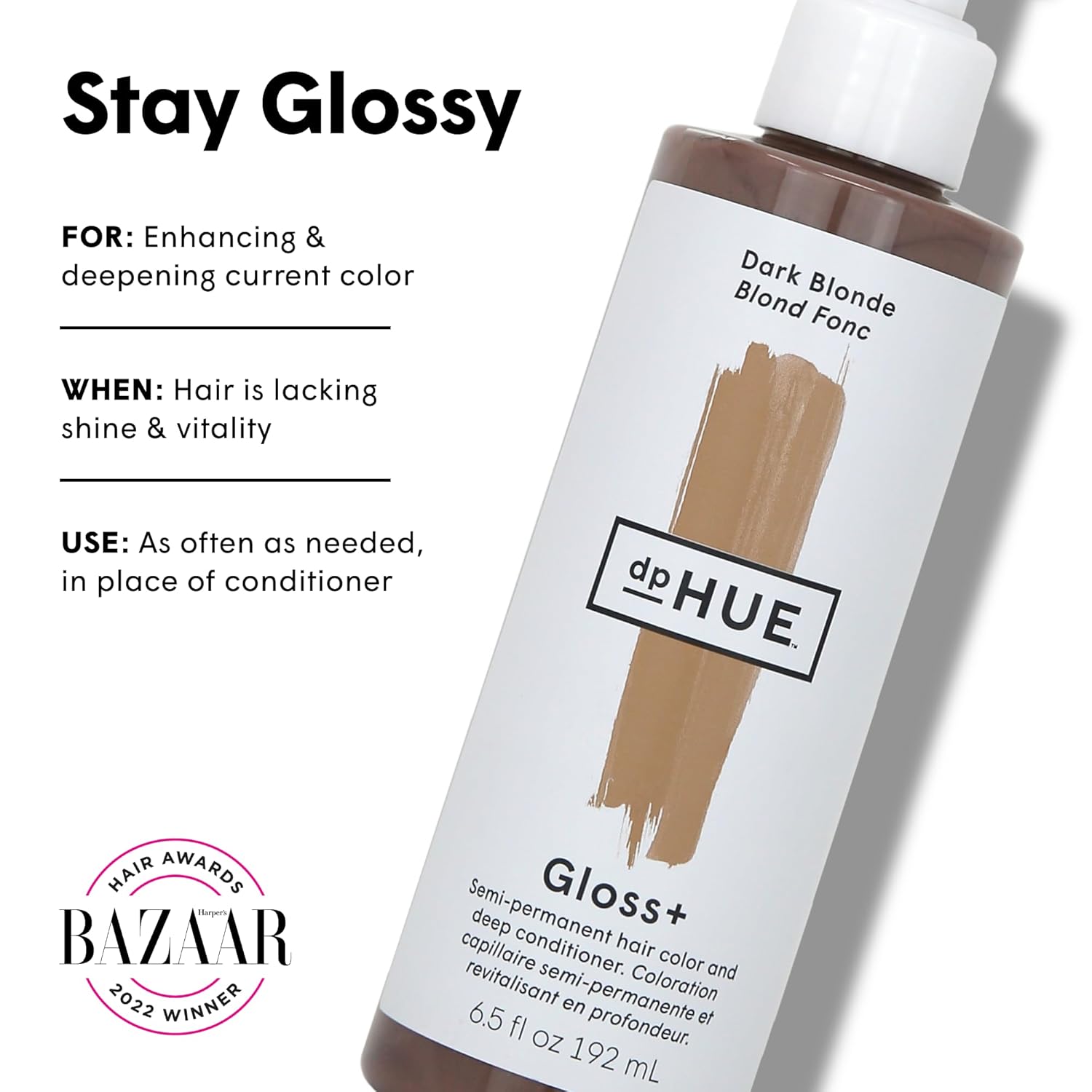 dpHUE Gloss+, Dark Blonde - 6.5 oz (8-12 Applications) - Semi-Permanent Hair Color & Conditioner - Lasts Up to Eight Washes - Paraben, SLS & SLES Sulfate Free - Vegan, Leaping Bunny Certified