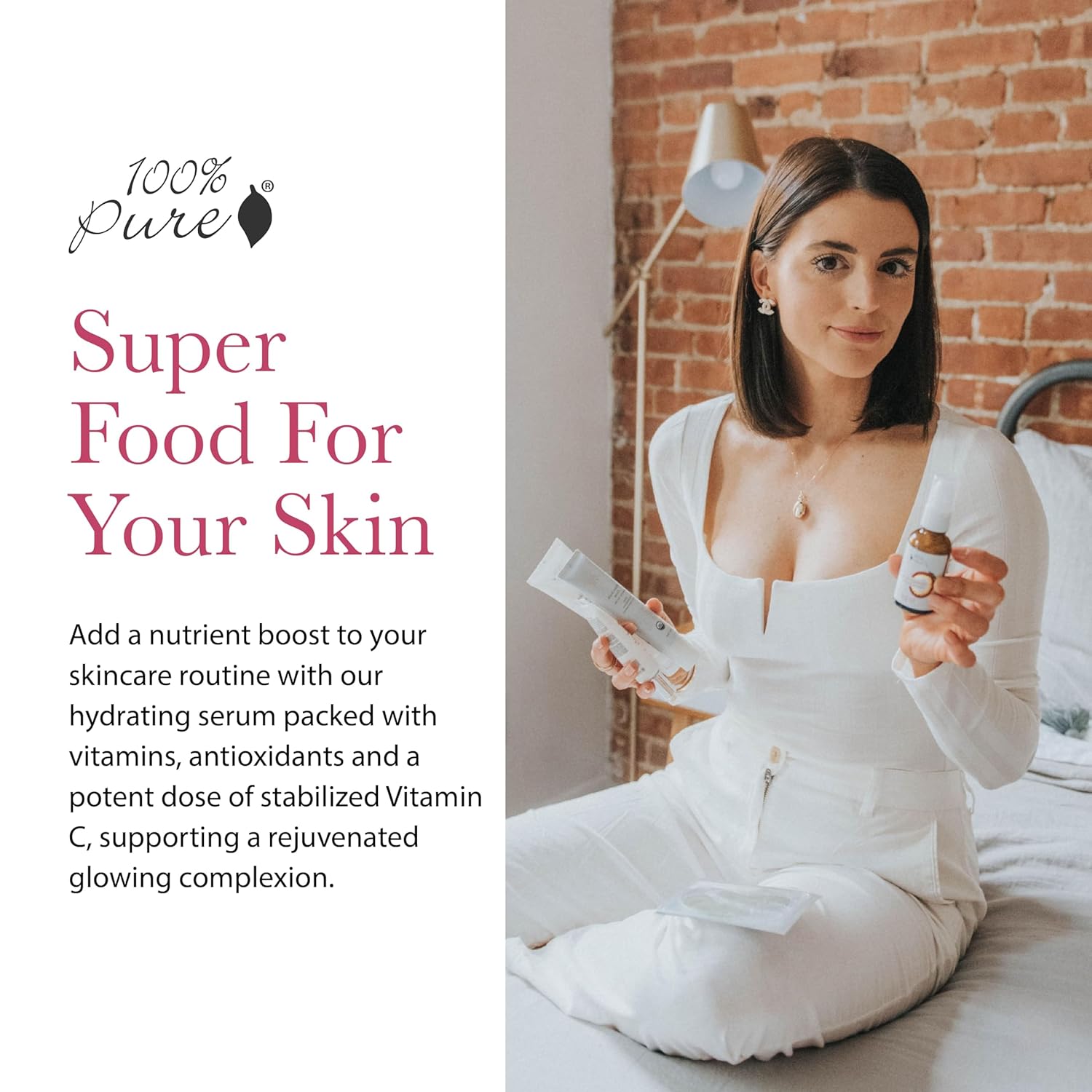 100% PURE Vitamin C Face Serum Hydrating Glow Skin Care with ALA Aloe + Vitamin E Oil - Daily Firming & Correcting Anti Aging Facial Moisturizer for Women & Men All Skin Types, Vegan - 1 Fl Oz
