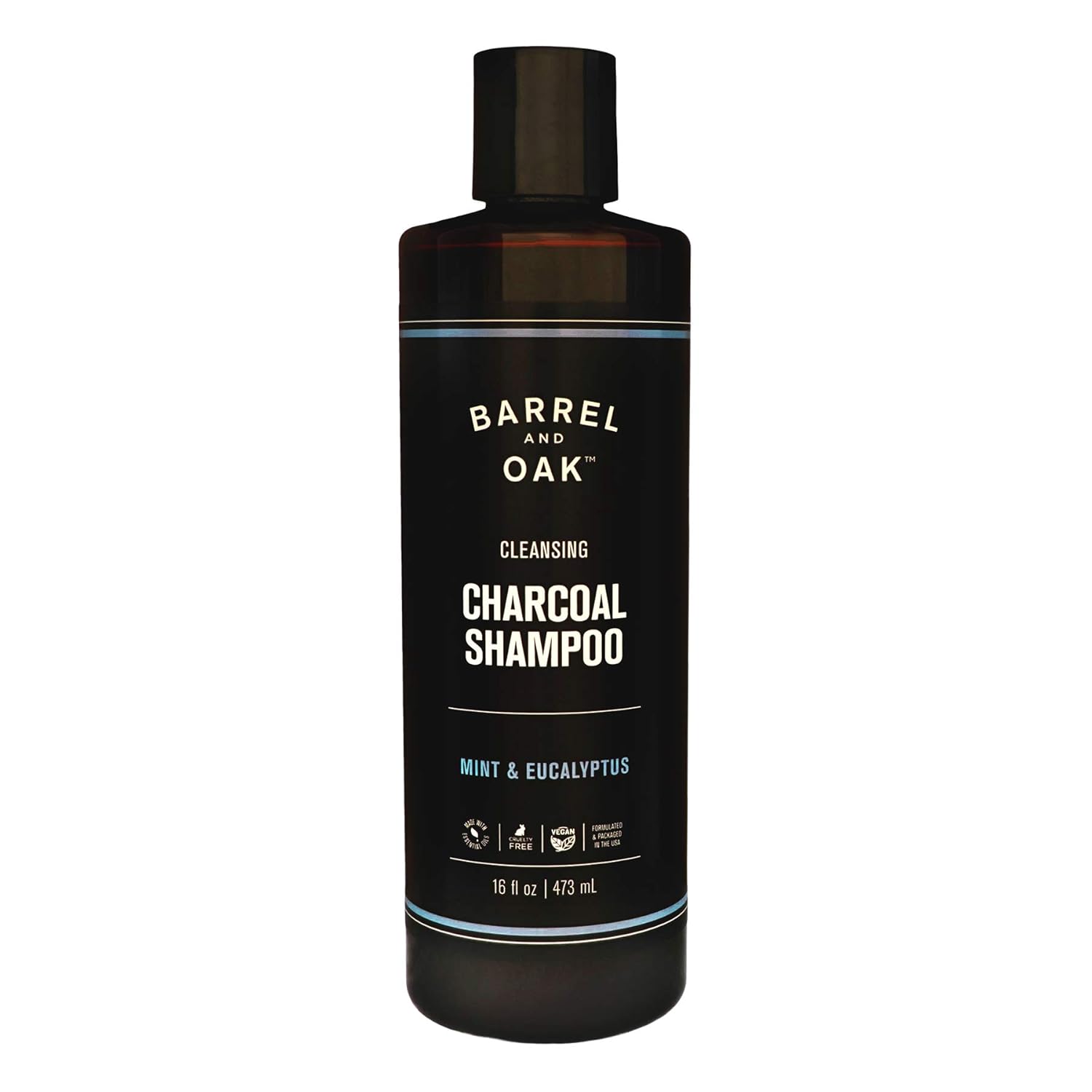 Barrel and Oak - Cleansing Charcoal Shampoo, Clarifying Shampoo, Hair Care for Men, Deep Cleans & Purifies, Hydrates & Soothes Dry Scalp, Essential Oil-Based Scent, Vegan (Mint & Eucalyptus, 16 oz)