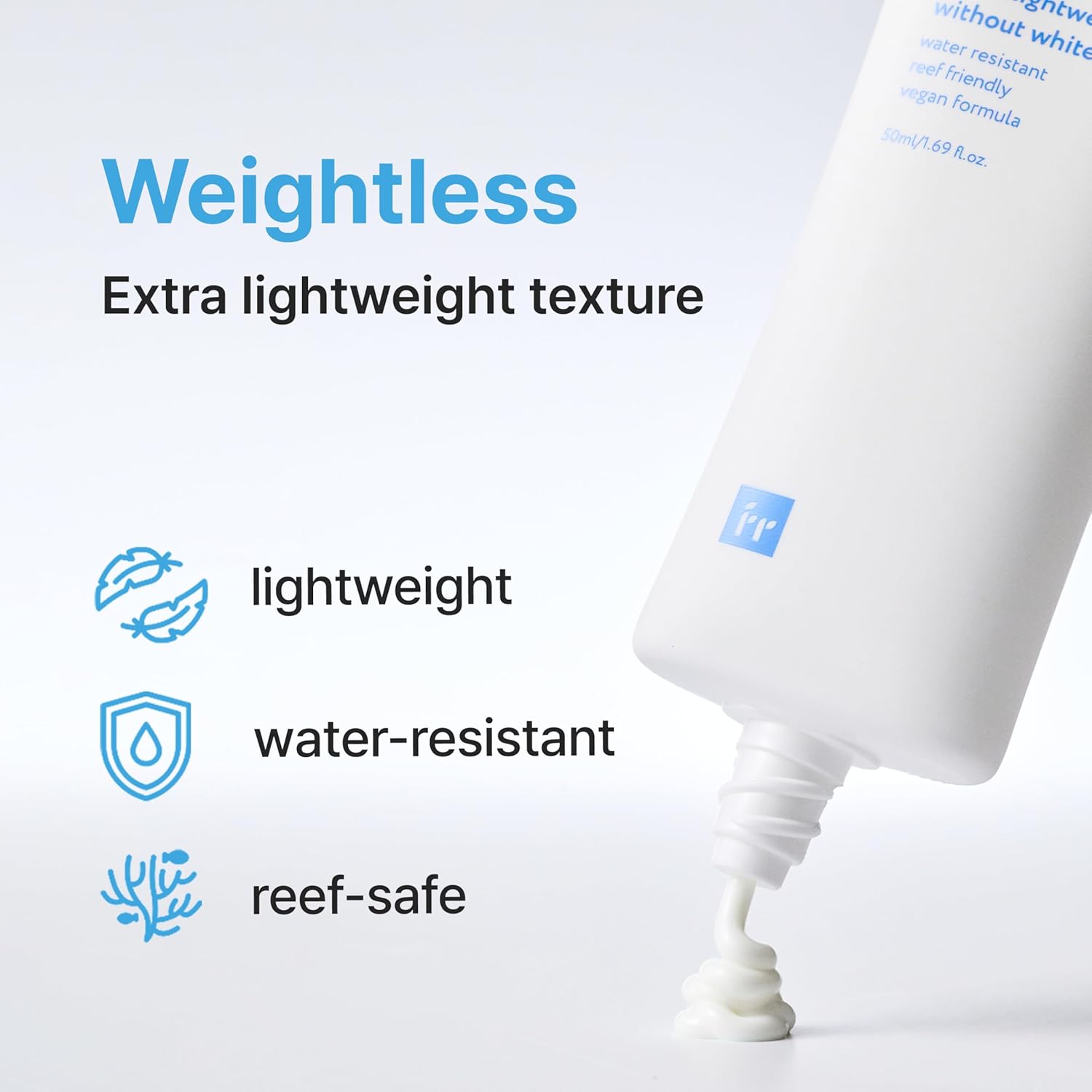 - [WEIGHTLESS KOREAN SUNSCREEN] Extra lightweight texture with zero white cast. Easily spreads and absorbs quickly, leaving a refreshing, non-sticky, non-greasy finish.
