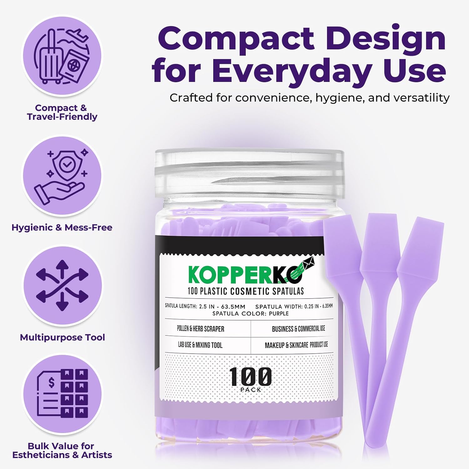 Mini Face Spatula (2.5", 100 Pack) - Small Foundation Spatula for Skincare, Creams, & Crafts | Plastic Face Lotion Applicator Tool for Mixing, Cosmetic, Face Mask | Purple