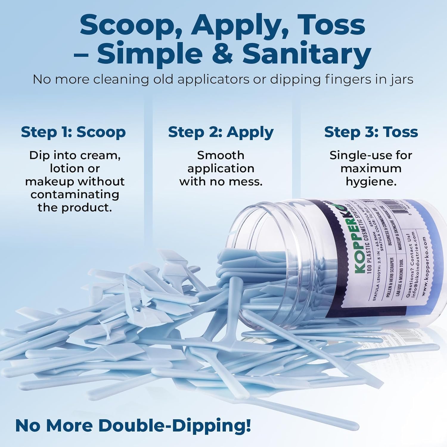 • Clean Out Your Containers: Maximize product use with our 100 pack of 0.25"x2.5" disposable makeup sample spatulas. Easily extract creams, lotions, or makeup from containers, even in tight spaces, without getting product under your nails