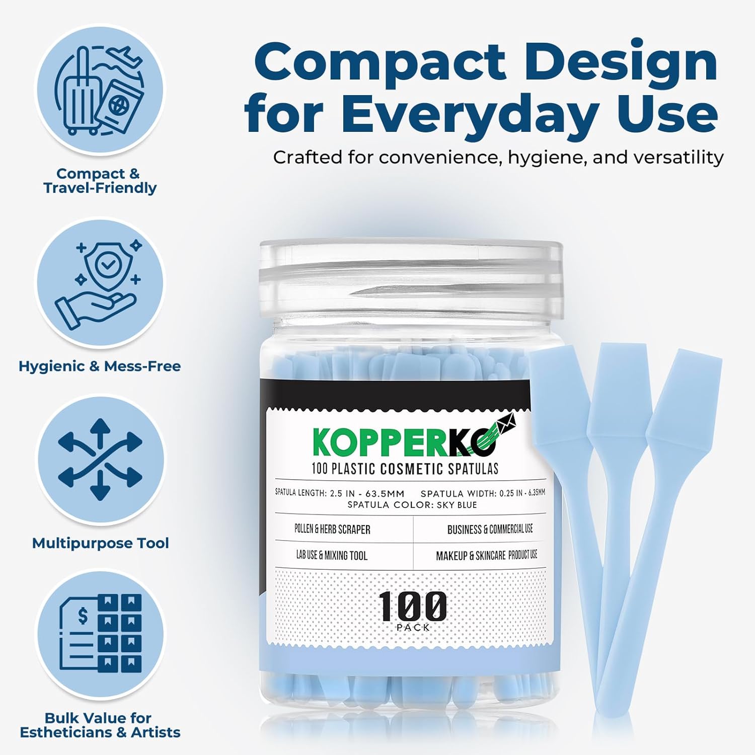 Mini Cosmetic Spatula (2.5”, 100 Pack) - Small Plastic Spatula for Skincare, Creams, & Crafts | Makeup Spatula or Multipurpose Mini Applicator for Mixing, Cosmetic, Face Mask | Sky Blue