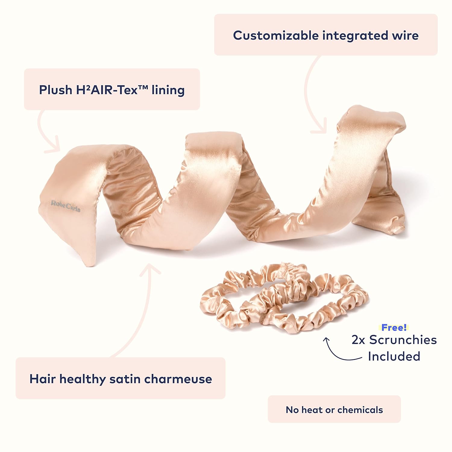 RobeCurls Heatless Hair Curler Set - Satin Curling Headband for Natural, No-Heat Curls - Sleep in Overnight Styling Tool with 2 Scrunchies - Easy & Gentle on Hair (Cream)
