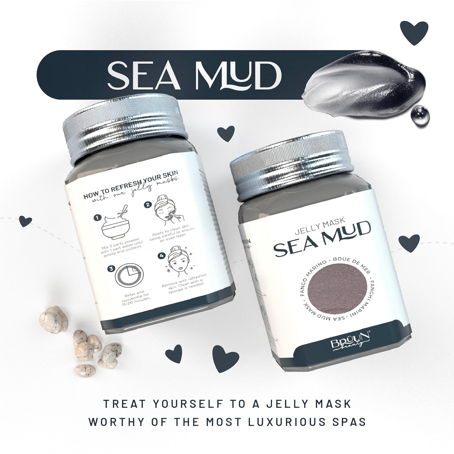 BRÜUN Jelly Mask Jar Sea Mud Peel-Off Face Care Rubber Mask | 23 fl oz Skin Care Moisturizing Gel Mask Jar Spa Set