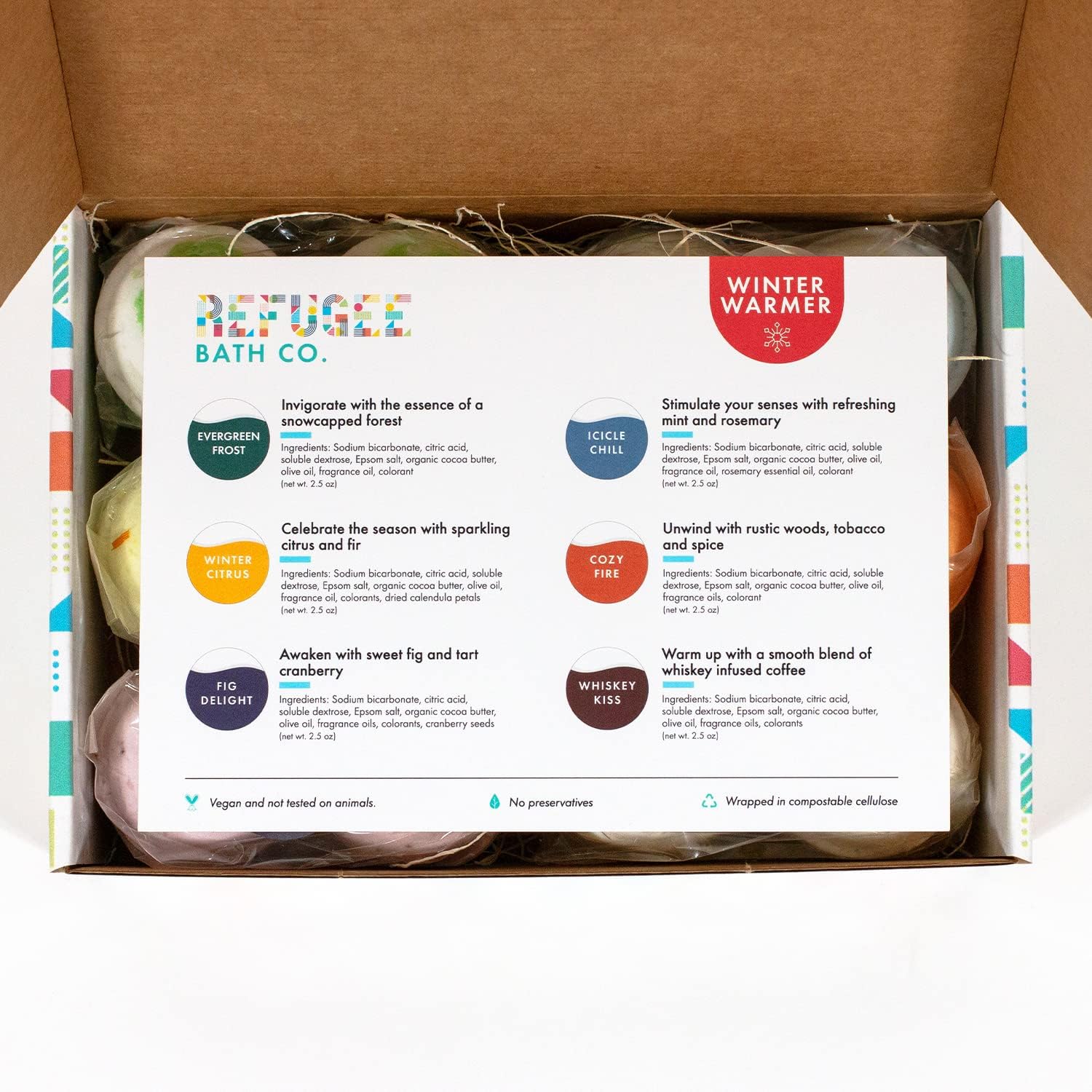 Variety Pack Bath Bombs, Winter Warmer Set, 2.5 oz, Support Refugee Employment in The USA