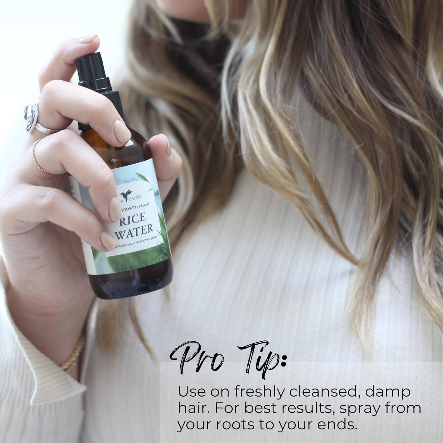 Rice Water For Hair Growth by Baja Basics, Thickness, Strength, Shine - Leave-in Conditioner for Scalp, Dry Split End Moisturizer - Fermented Rice Water Spray for Curly, Straight, Thick, Thin Hair 4oz