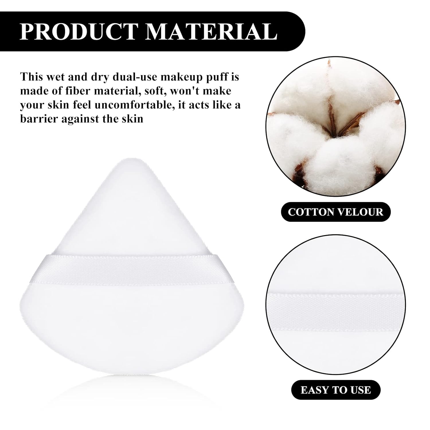 - Humanized style: our powder puff is actually designed with triangle and circle style, when you put the foundation on your cheeks and forehead, you can use the round side, when you put foundation on the eye, you can choose the triangle side, and you won't have to worry about the uneven makeup