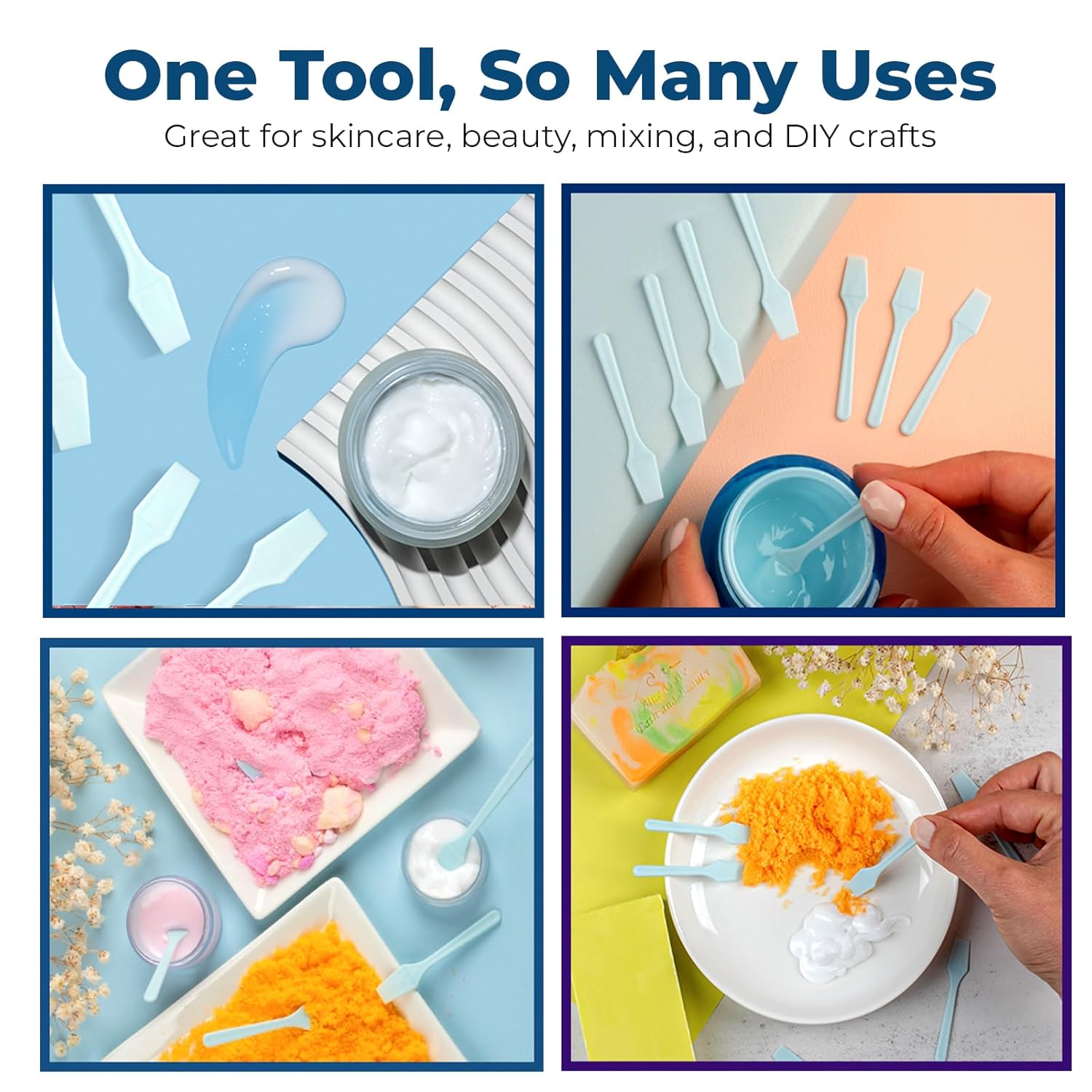 - DIY Skincare Creations: Our versatile tiny spatulas for cosmetics are the perfect skincare tools for mixing your homemade skincare concoctions, including face masks, creams, and more. Plus, use these disposable makeup applicators for sampling or applying products
