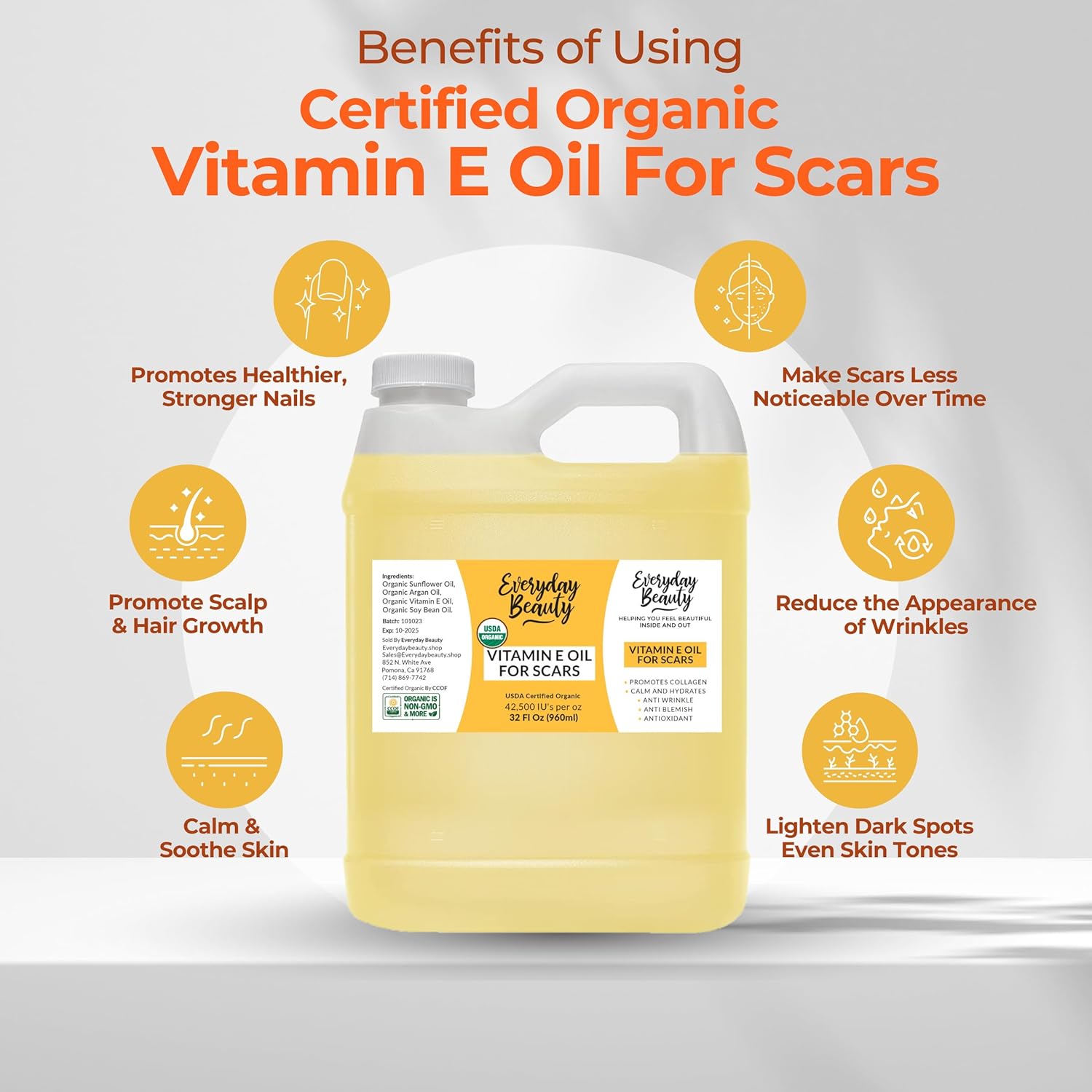 - USDA Certified Organic, Vegan and 100% All Natural Vitamin E Oil For Scars