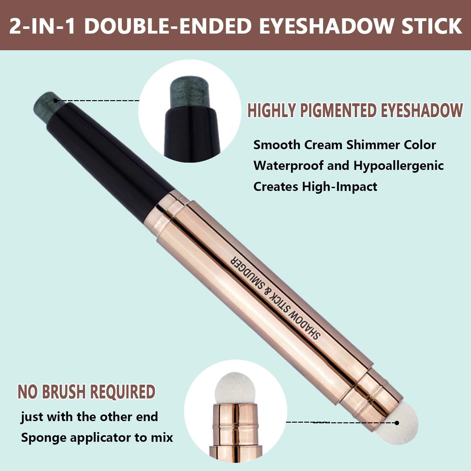 - 2 in1 Eyeshadow Stick . Each eyeshadow stick comes with a soft brush that blends eyeshadow better without crossing colors. The soft brush is easier to mix, and does not hurt your skin. The twist design is easy to control the length of eye shadow stick makeup. Quick application for both professional makeup and beginners.
