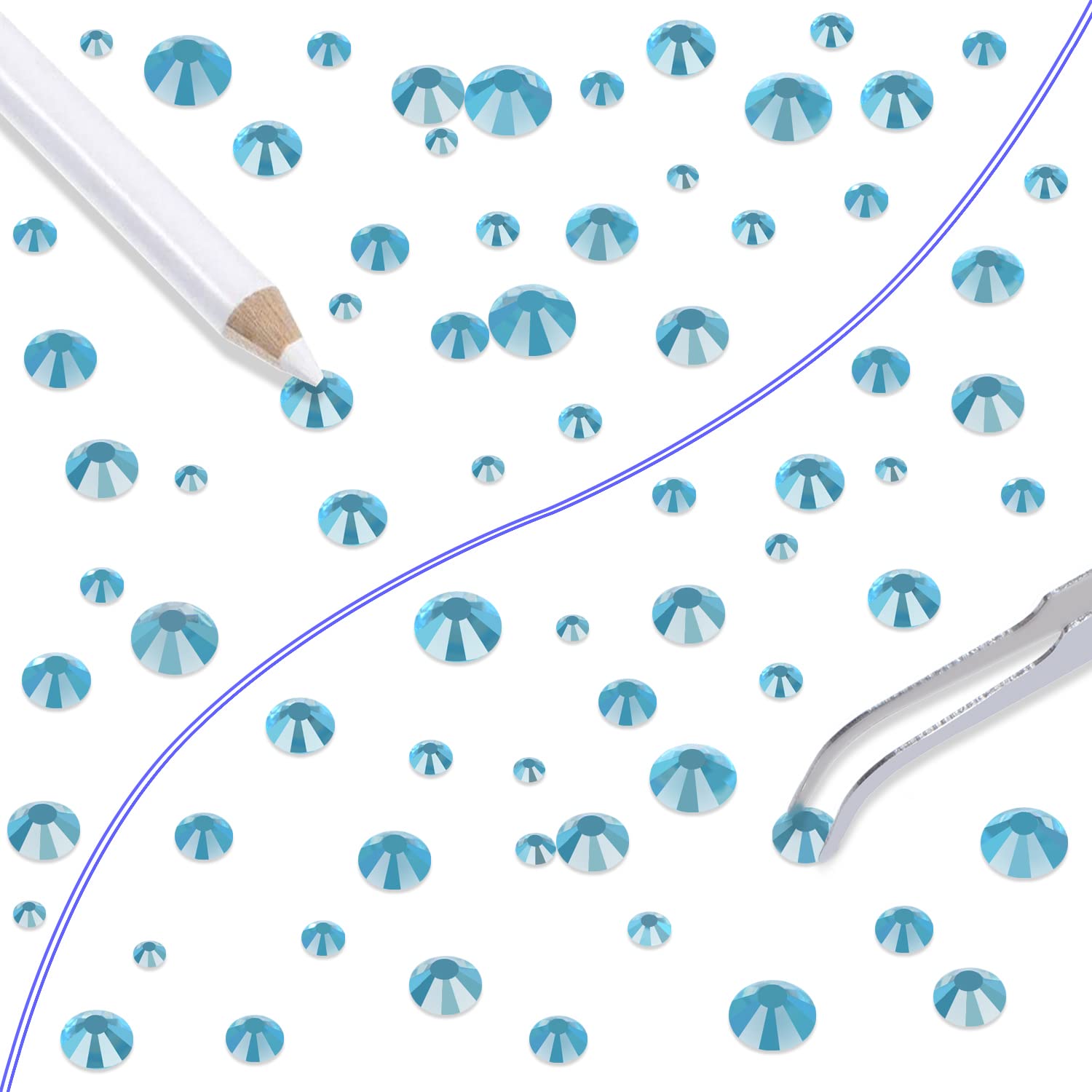 LPBeads 6000 Pieces Lake Blue Non Hotfix Rhinestones 6 Sizes Round Crystal Glass Flat Back Rhinestones with Tweezers and Picking Pen for Nail Art Crafts Clothes Bags DIY