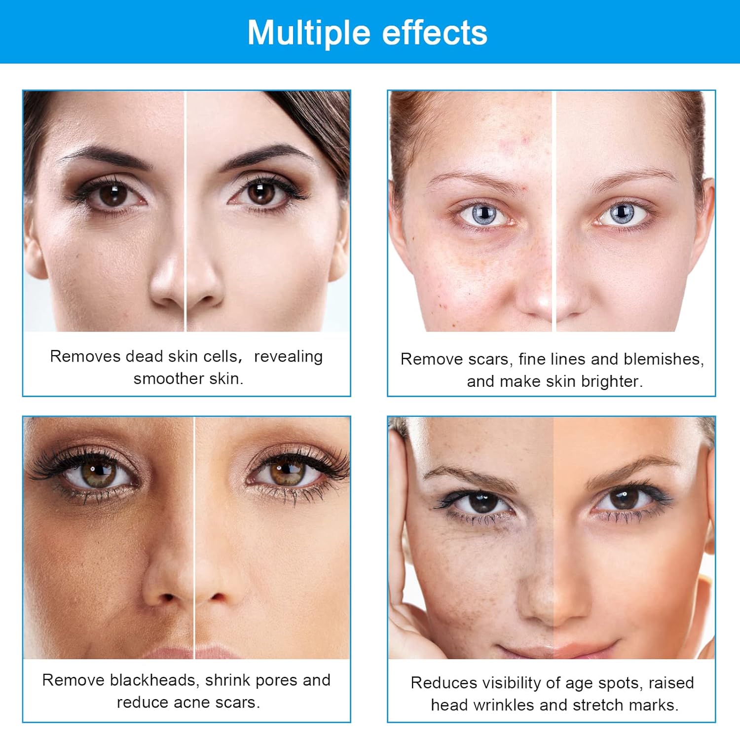 - 【Diamond Microdermabrasion】This dermabrasion facial machine provides skin resurfacing procedure. It rub off the dead cells at the top skin layer. For example, removes skin debris, scars, blemishes, wrinkles and uneven pigmentation of the skin.