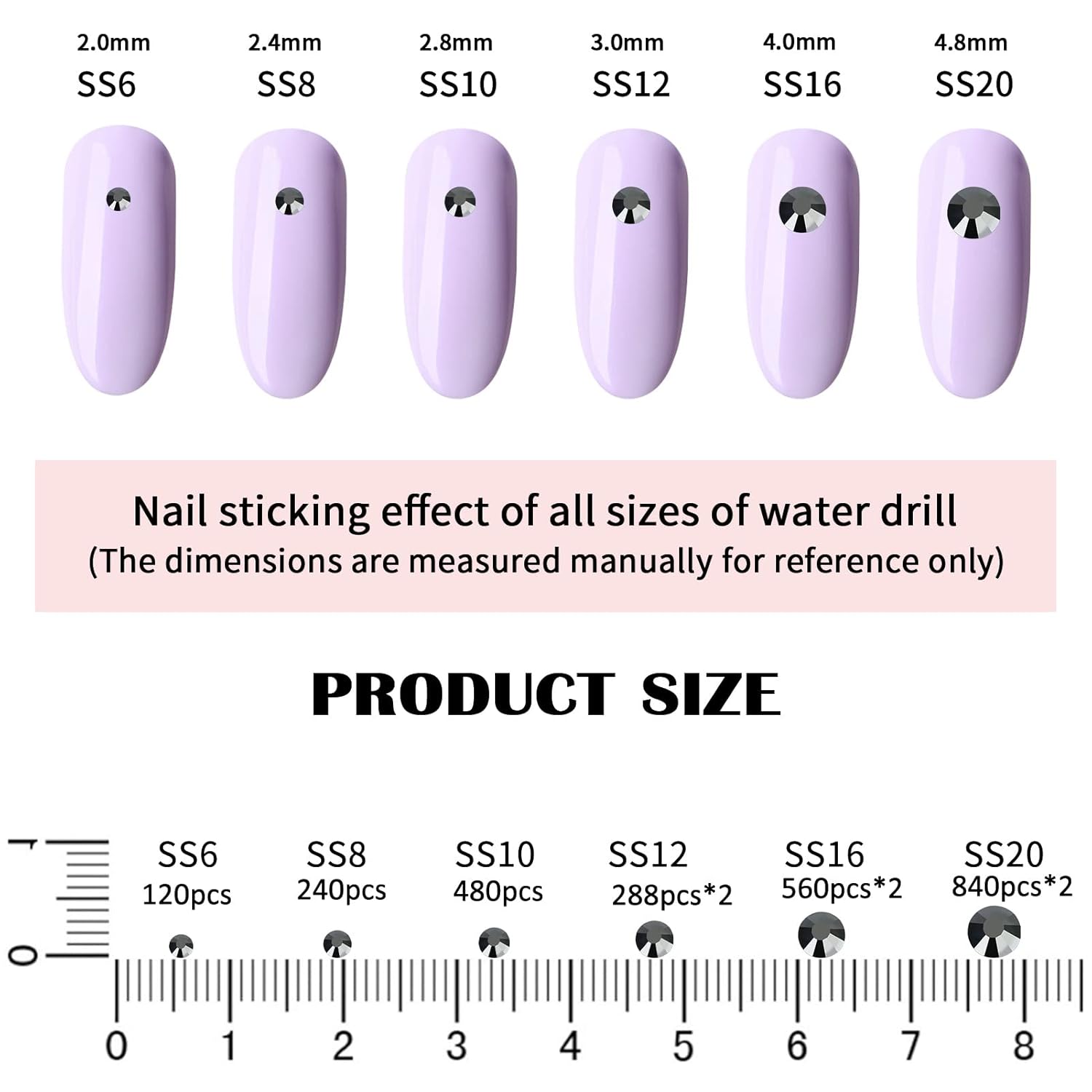 - 💎Product Packaging: Box Packaging SS6 2MM - 1680 Pcs, SS8 2.4MM - 1120 Pcs, SS10 2.8MM - 600 Pcs, SS12 3MM - 480 Pcs, SS16 4MM - 240 Pcs, SS20 4.8MM - 120 Pcs, 1 pcs Tweezers and 1 pcs Picking Pen.