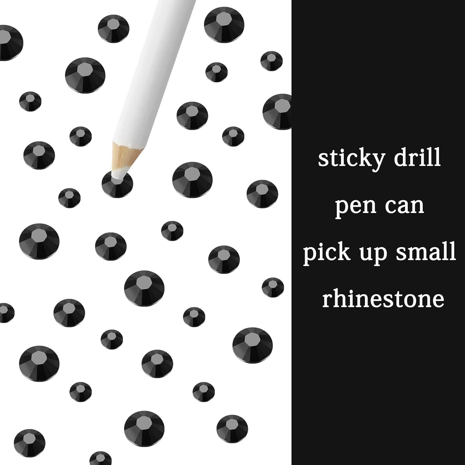 - 3 Sizes Rhinestones Set with Pick Up Pen: 2050 pcs per box. Round flat backs &Non Hotfix, SS10 (3mm) 1100PCS, SS16 (4mm) 600PCS / SS20(5mm) 350PCS.