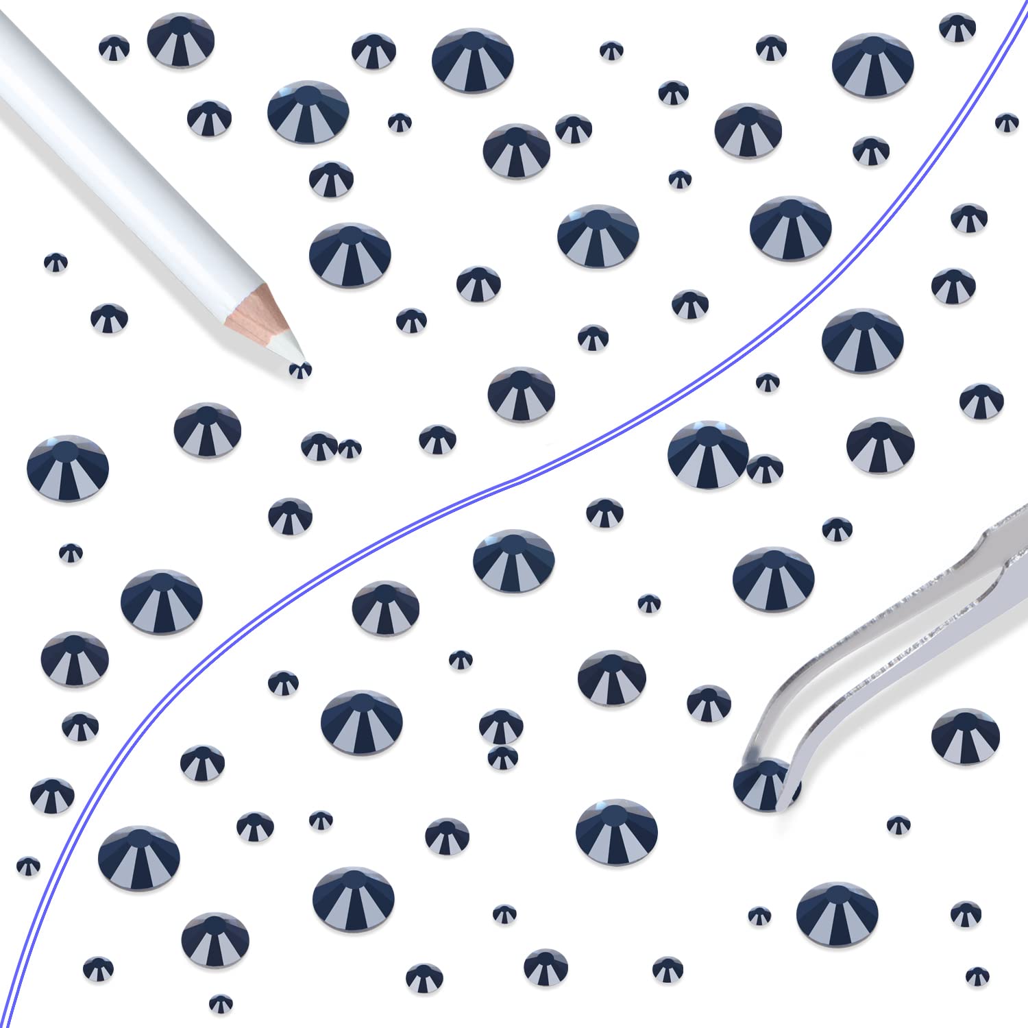 - Approx 6000 pcs of good quality sparkly flatback glass rhinestones with tweezers and 2 picker wax pencils help you easily pick up and set rhinestones in all your jewelry.