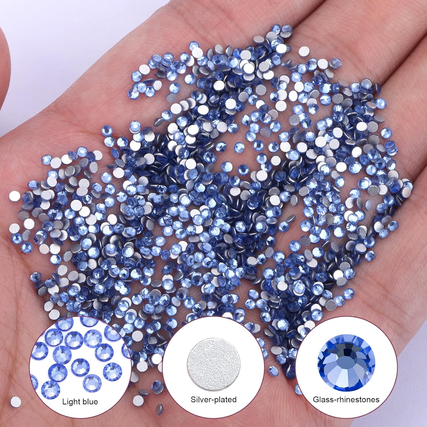 1440Pcs Light Blue Crystal Rhinestones,Glass Flatback Rhinestones Gemstones Small for Nail Face Makeup Art Crafts Clothes Decoration - (SS8,2.4mm,Light Blue)