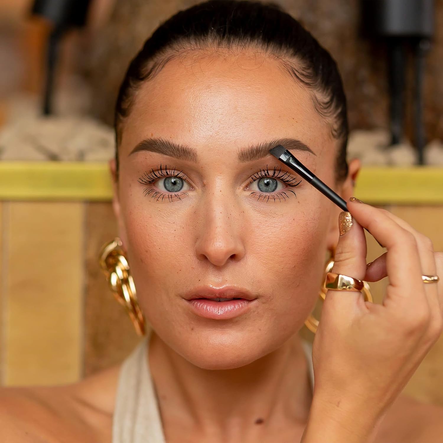 • EASY APPLICATION: Place the stencil on your brows and apply the brow powder using the dual-ended applicator brush in light, feathery forms to accomplish your desired look. Begin with the darker shade and blend in the lighter shade to add dimension. Finish by applying a bit of brow highlighter on the brow bone area.