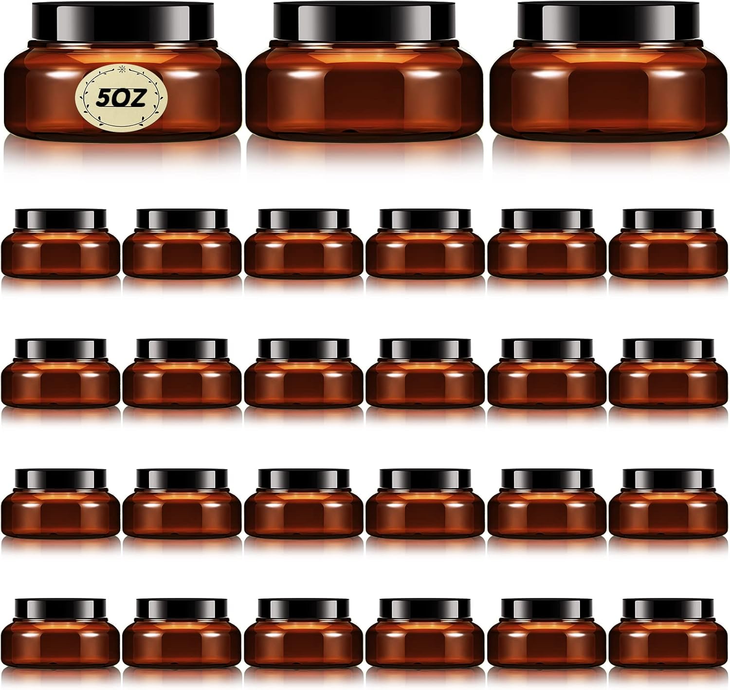 Tessco 24 Pack Plastic Jars with Lids Labels Empty Clear Plastic Jars Round Refillable Cosmetic Containers Body Butter Containers Bulk Sugar Scrub Bottle for Make Up(5 oz,Brown)