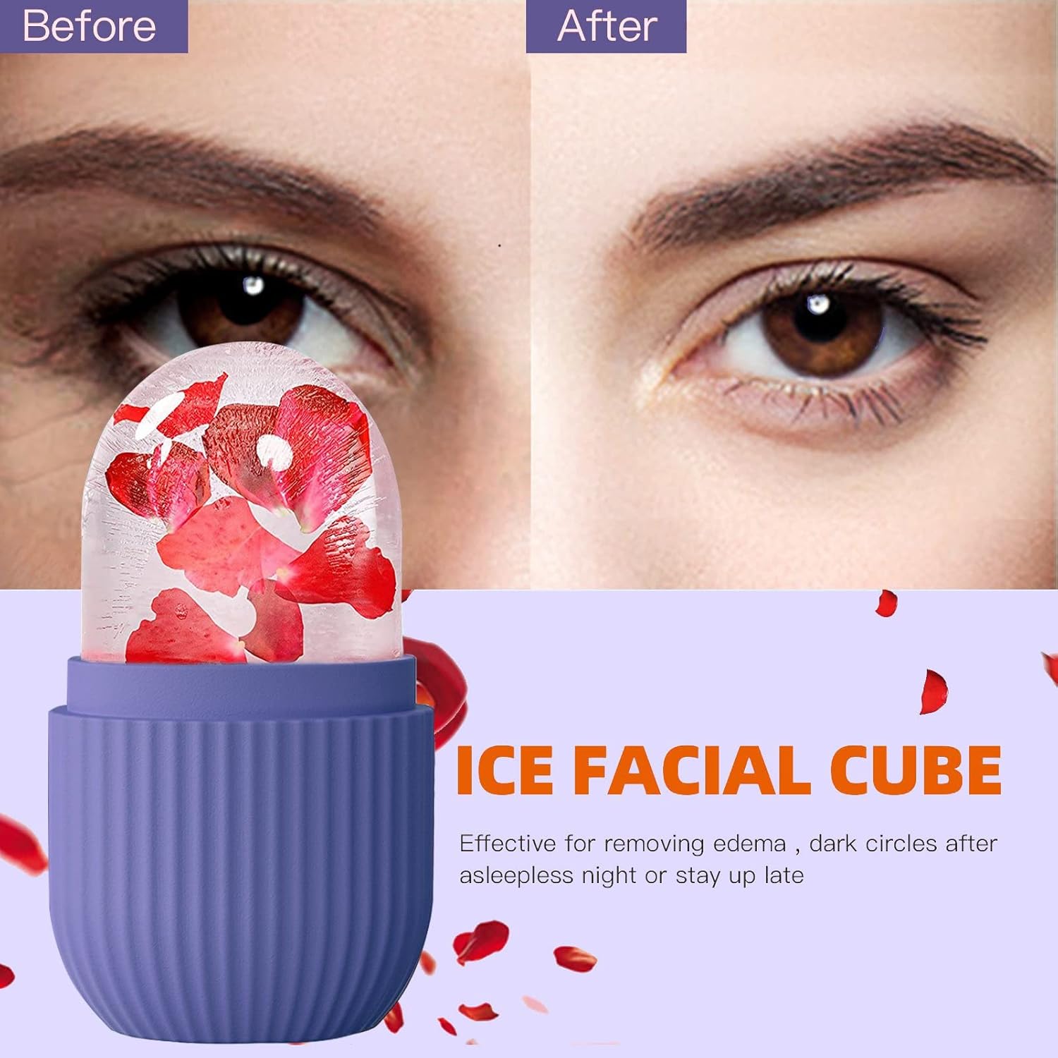 KOGITI Ice Mold for Face & Eye, Beauty Facial Roller, Puffiness Relief Massage Skin Care Tool, Ice Cube Holder (Purple)
