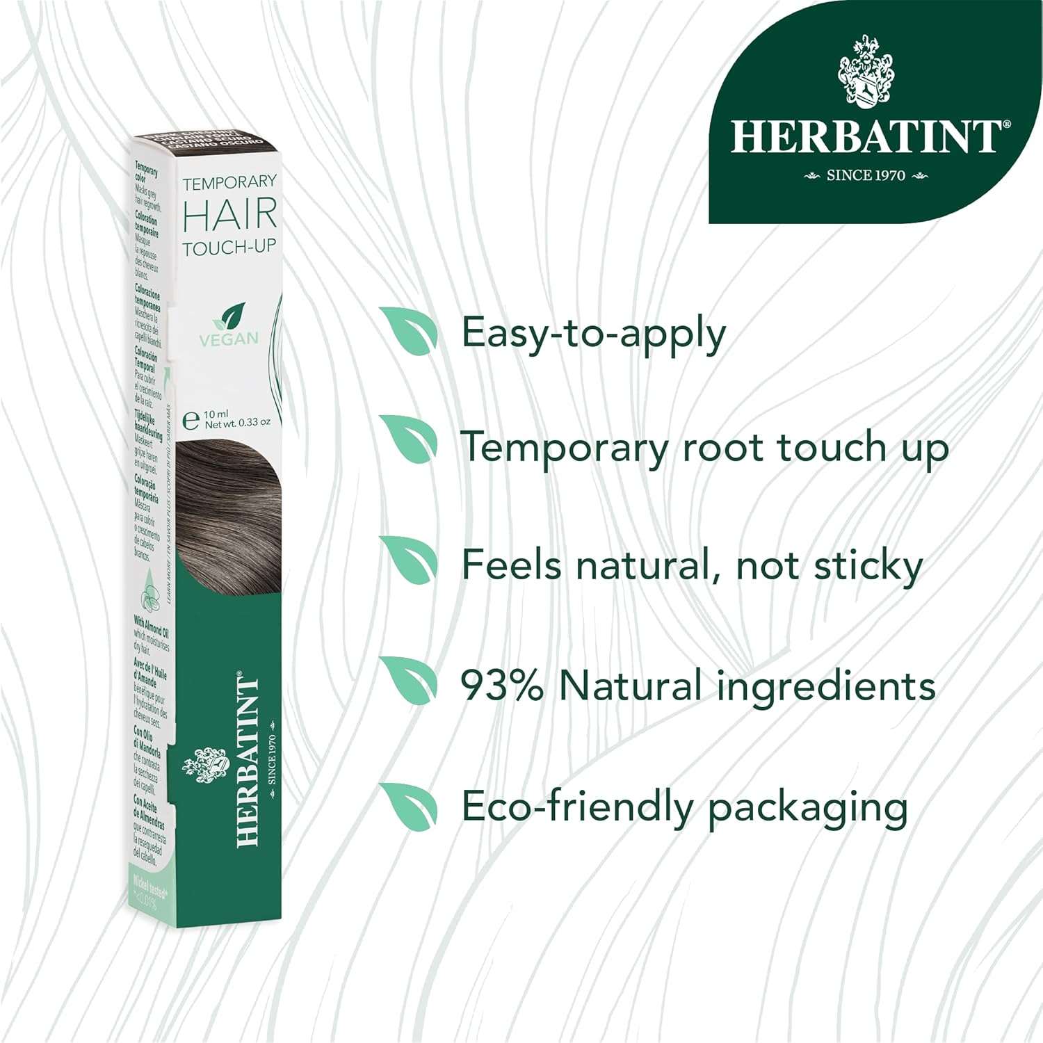 Herbatint Temporary Hair Touch-Up - Instantly Mask Grey Roots Between Coloring with Easy To Apply Precision Brush Kit - Natural-Looking Concealer For Dark Chestnut Hair - Vegan - .33 oz