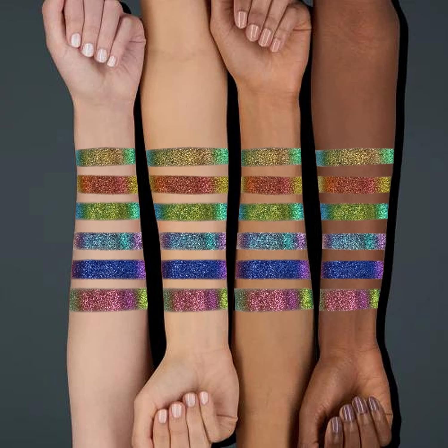- 【Liquid Eyeshadow Inspired by Northern Lights】The metallic liquid eye glitter shadows are inspired by the Northern Lights, showing a strong flowing color changes as the light changes, each holographic eyeshadow with three shifts, one main color, and two additional colors, seamless, more than the average single-color eye shadow Brighter and more fashionable, creating the illusion of professional multi-layered eye makeup.