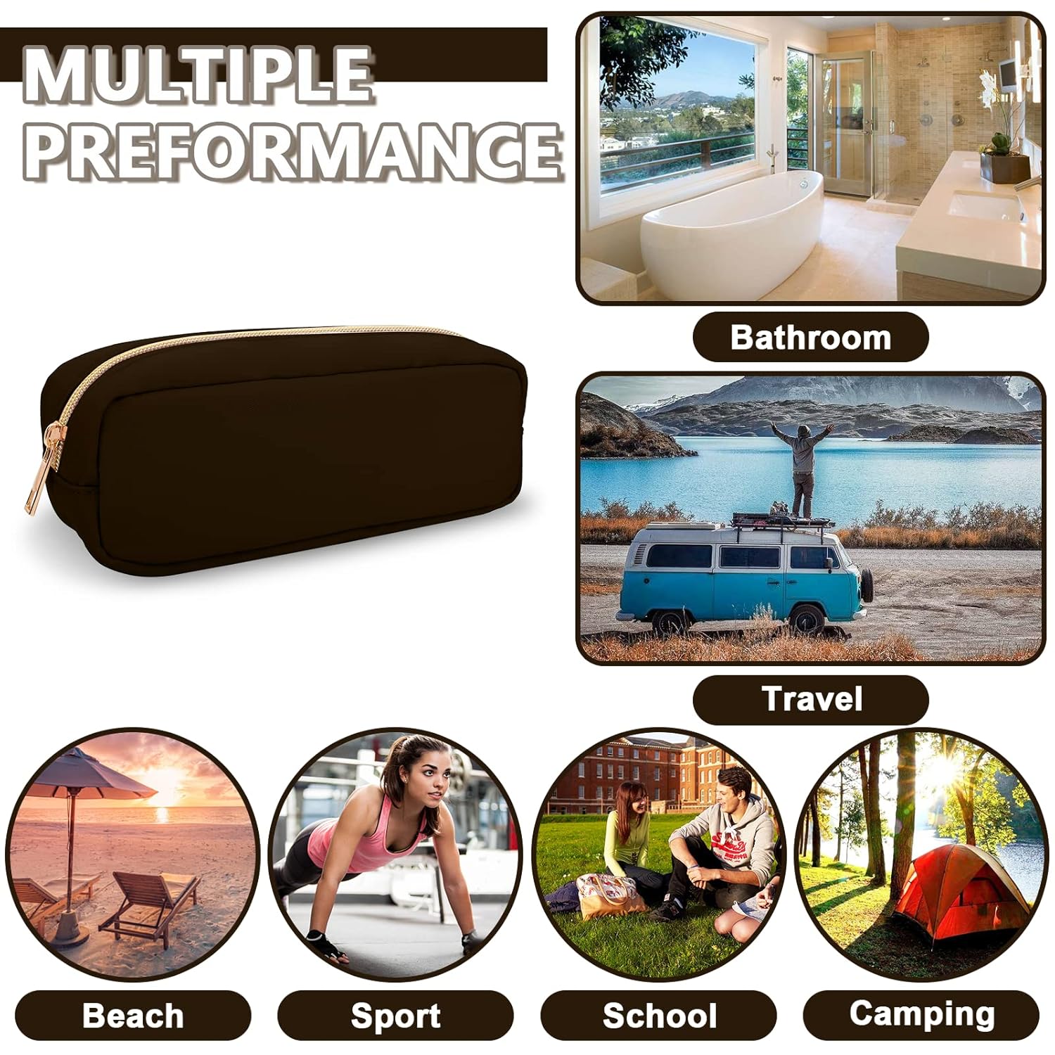 • 【Multi-purpose】The preppy makeup bag makes it easy to pack and carry cosmetics, jewelry, sanitary napkins, brushes, pencils, small electronic accessories, toiletries, medications, tools or other travel essentials. It's a great bag for school, travel, parties, camping, beach, gym, etc.