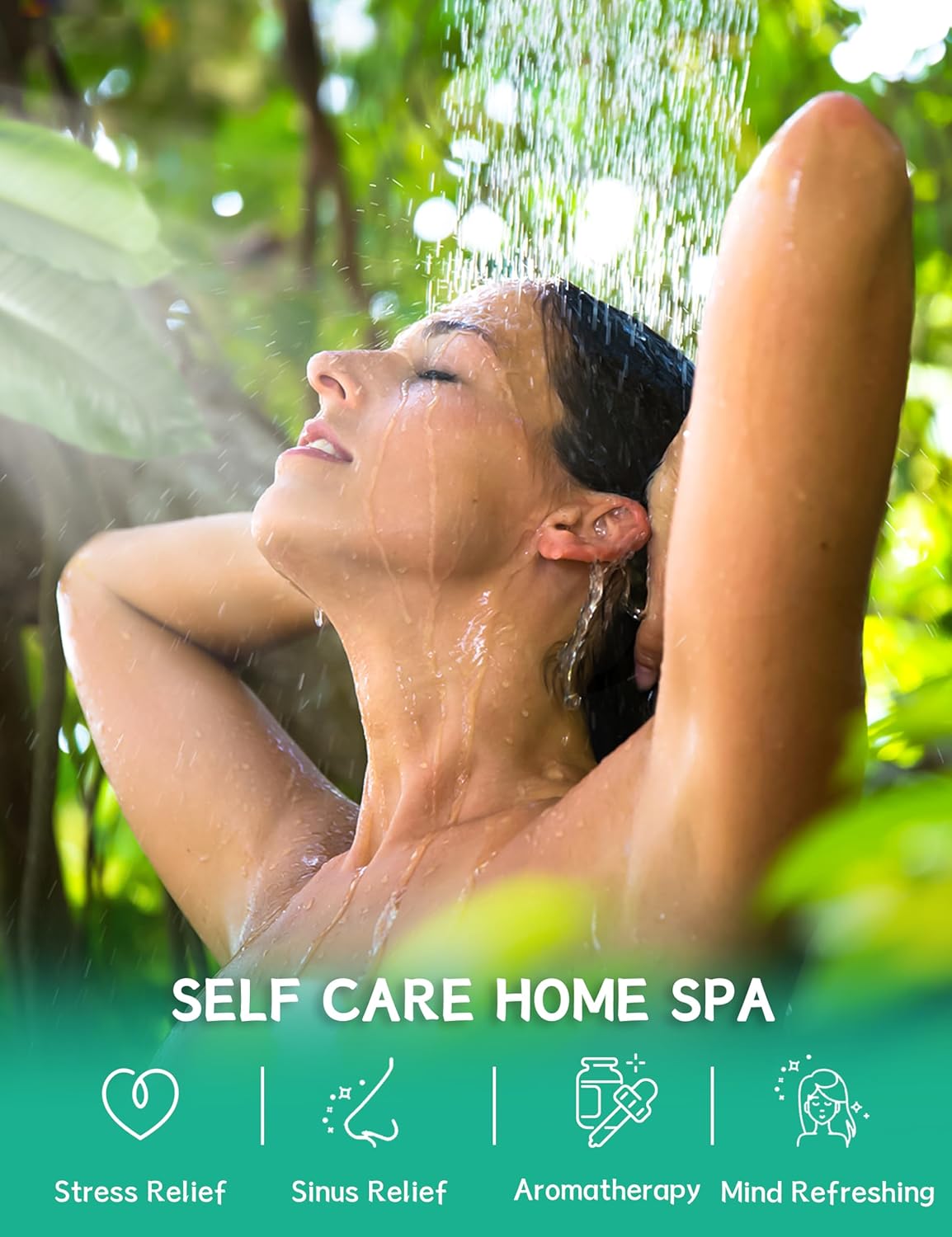 - Indulge in Nature's Goodness: Immerse yourself in the rejuvenating power of our shower steamers infused with 100% all-natural & organic Menthol and Eucalyptus essential oils. Experience the benefits of our exclusive time-release technology, which ensures extended usage and clean dissolving, without leaving any residue behind. Boost your mood, relieve stress, and indulge in a truly invigorating aromatherapy experience