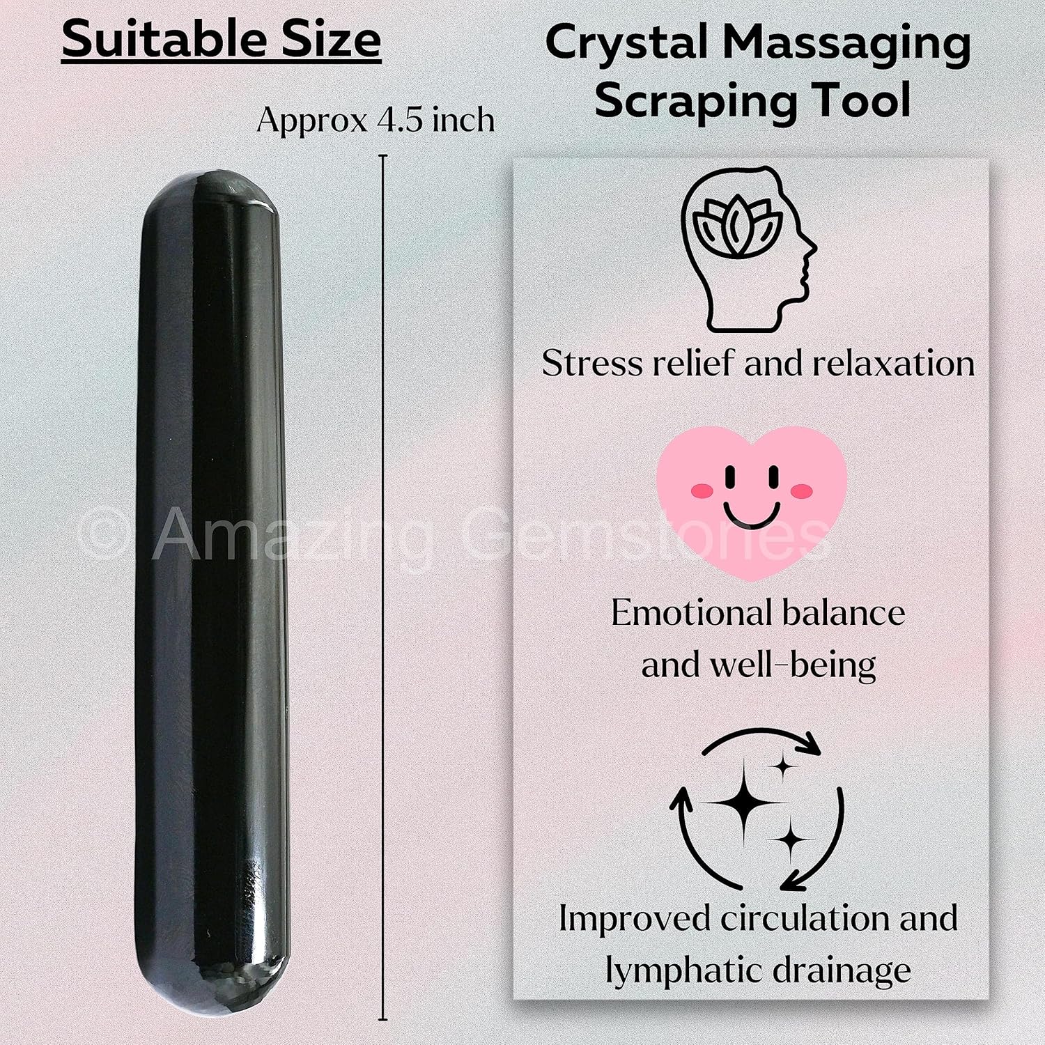 Amazing Gemstone Black Agate Crystal Wand Massage Stick - Pelvic Wand Gua Sha for Adults - Crystals and Healing Stones Massage Wands for Adults Gifts (Smooth)