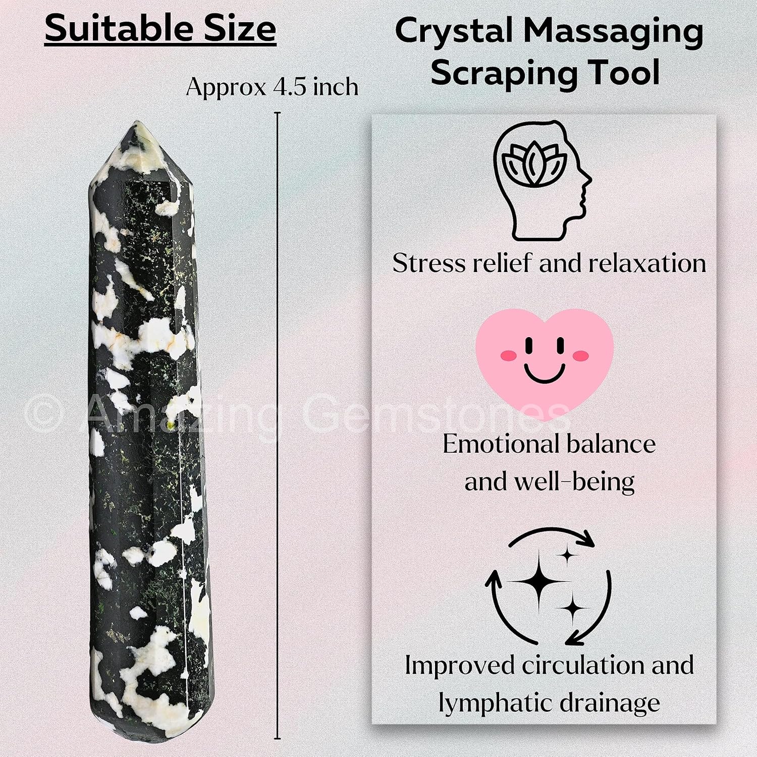 Amazing Gemstone Black and White Tourmaline Crystal Wand Massage Stick - Pelvic Wand Gua Sha for Adults - Crystals and Healing Stones Massage Wands for Adults Gifts (Pointed)