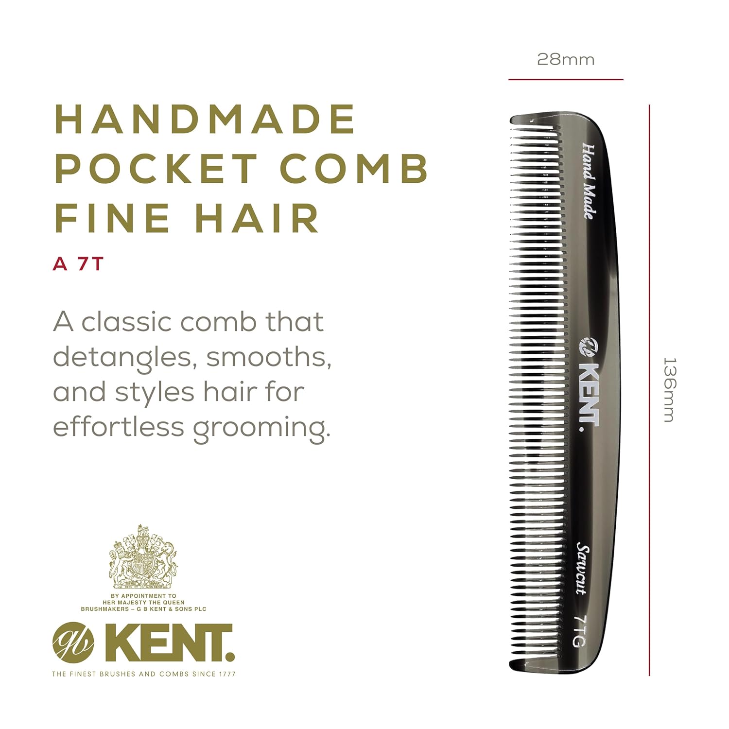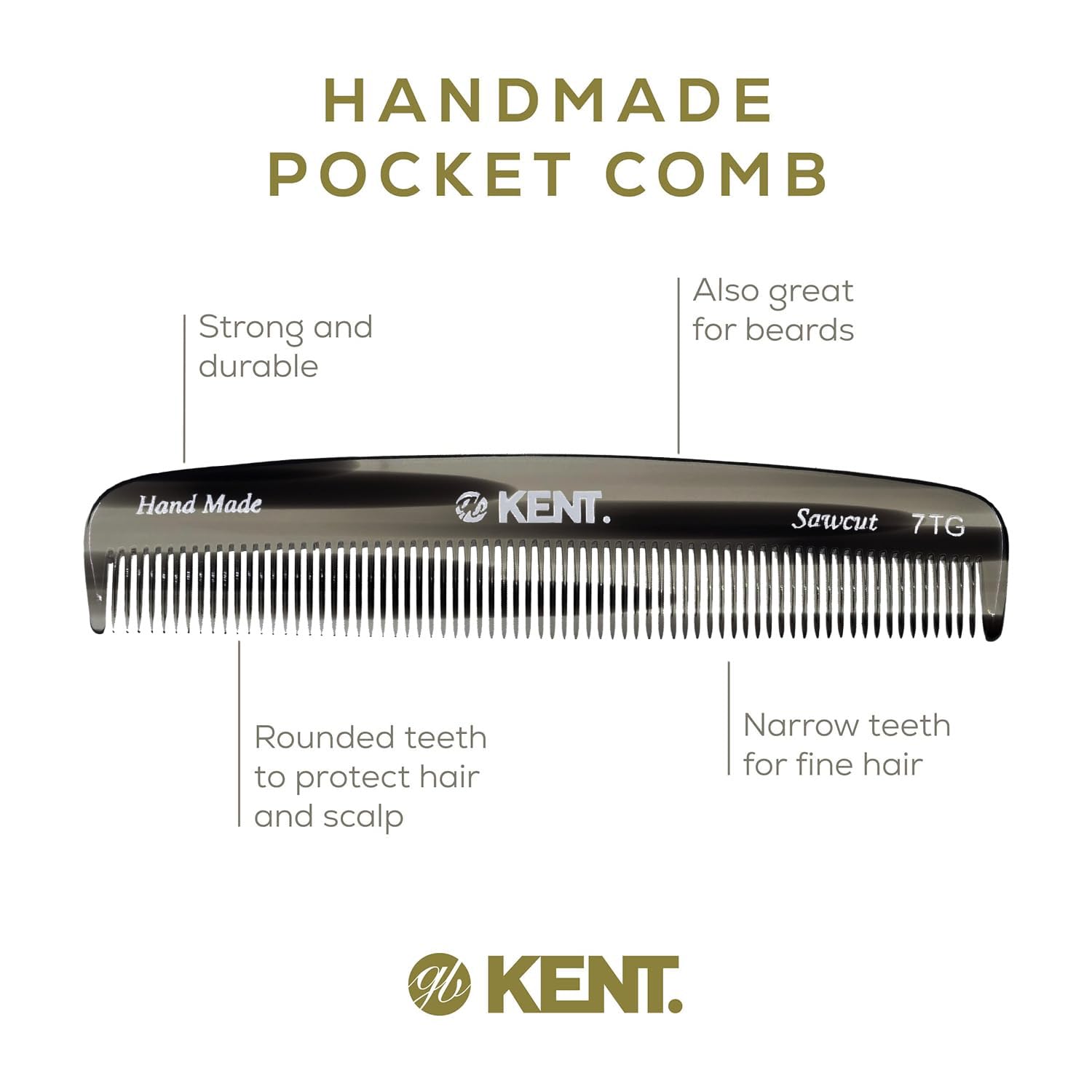 Kent 7T G All Fine Tooth Pocket Comb-Handmade Hair Comb for Grooming and Styling-Travel Comb for Hair Care,Mustache and Beard Care, Use Dry or with Balms, Saw Cut and Hand Polished for Wet or Dry Hair