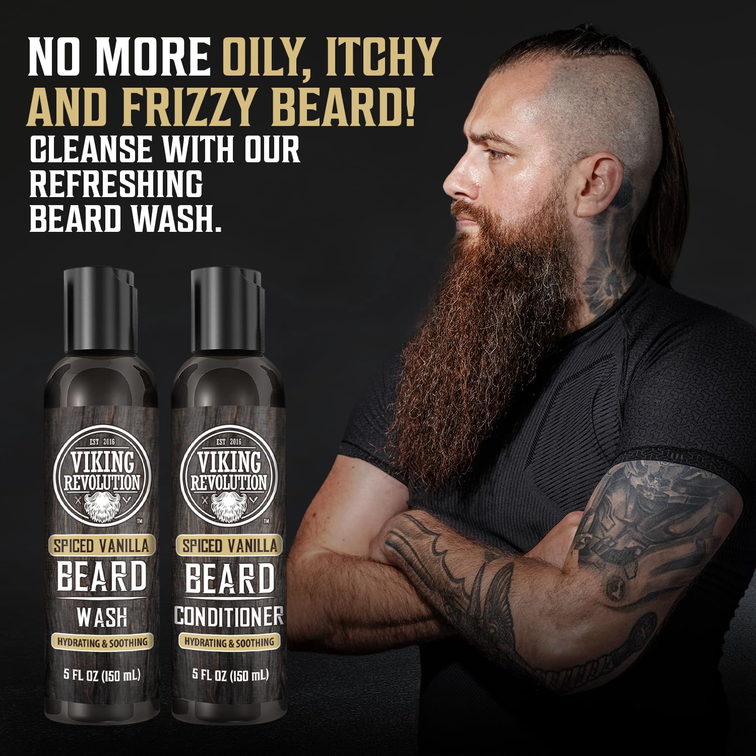 Viking Revolution Beard Wash and Beard Conditioner for Men with Argan Oil and Jojoba Oil - Beard Softener and Strengthener Beard Care Beard Shampoo and Conditioner with Beard Oil (5oz, Spiced Vanilla)