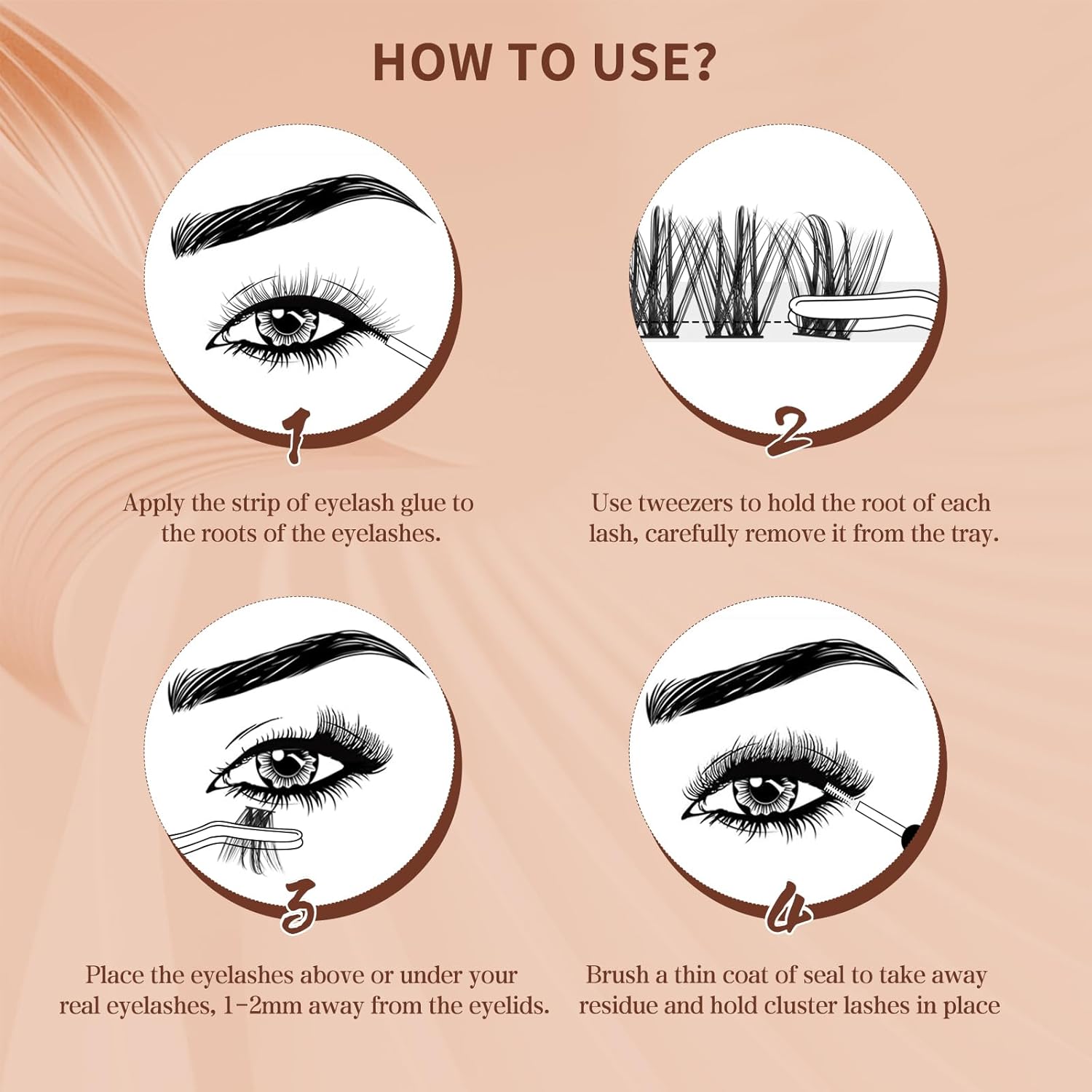 - DIY Eyelash Extension Kit: QUEWEL DIY lashes extensions kits, 144pcs lash clusters, black lash bond&seal, a gold tweezer for lash clusters and one cluster eyelashes glue remover, specially designed for DIY eyelash extension. Try the perfect set with affordable price for DIY cluster lashes, so convenient to use at home or travel, without taking up too much storage space