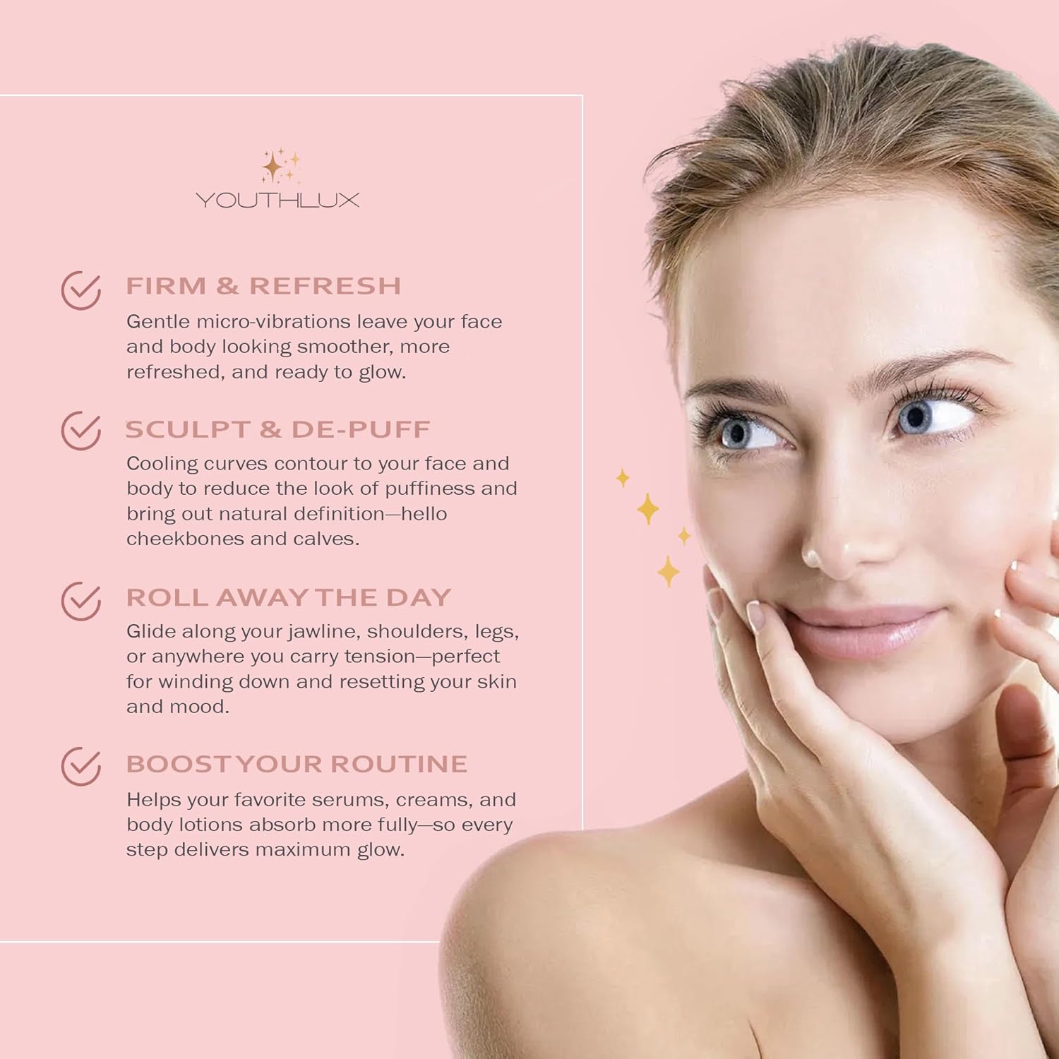 - ENHANCE YOUR SKINCARE ROUTINE: Glide the roller over serums and creams to help boost their absorption, leaving your skin feeling nourished, pampered, and glowing.