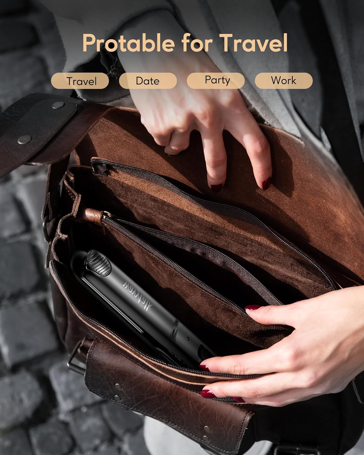 - Ceramic 3D Floating Plates: This small flat iron harnesses the cutting-edge technology of PTC ceramic heaters, allowing for an even distribution of heat throughout every strand. Thanks to the innovative 3D floating plates, this mini straightener effortlessly glides over your locks, ensuring a snag-free, frizz-free, and damage-free experience. Revel in the ethereal beauty of hair that is not only soft and shiny, but also remarkably smooth