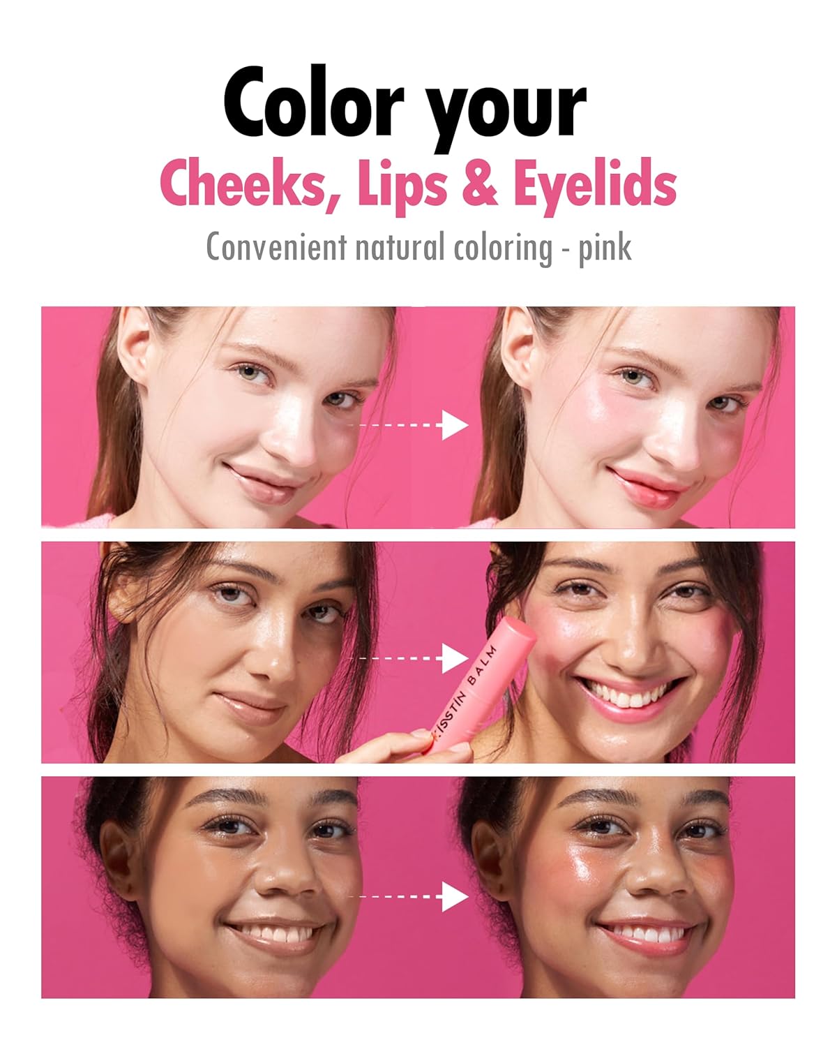 - ✅ TINTED BALM FOR A NATURAL LOOK Doubles as a lip balm, blush, and eyeshadow for a vibrant, dewy finish. Enriched with Salmon Complex, it hydrates and enhances your natural beauty with a hint of color.