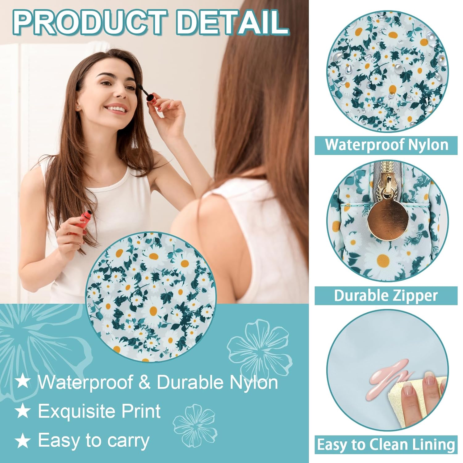 - 【Superior Quality】The floral makeup bag is made of lightweight and durable high quality nylon. It is waterproof and easy to clean, helping to protect your cosmetics and toiletries from water spill accidents.