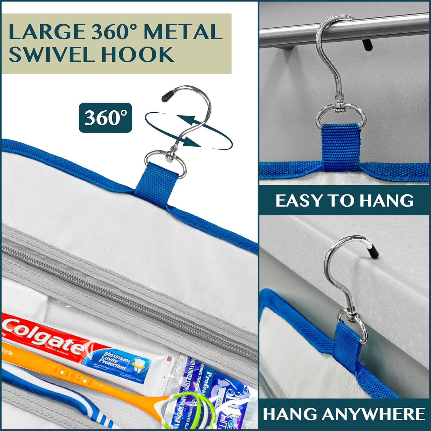 - HANGING COSMETICS TRAVEL BAG ORGANIZER: This toiletry bag for women has a hanging hook and multiple pockets that help you stay organizer during business trip, vacation travel. The hanging hook makes it easy to hang the toiletry bag to bars in the hotel shower bathroom. Unzip your toiletry bag to reveal compartments to organize your shampoo, skincare face hygiene products. This toiletry travel bag is an essential accessory for cruise in Europe, plane, Hawaii Trip, and honeymoon.