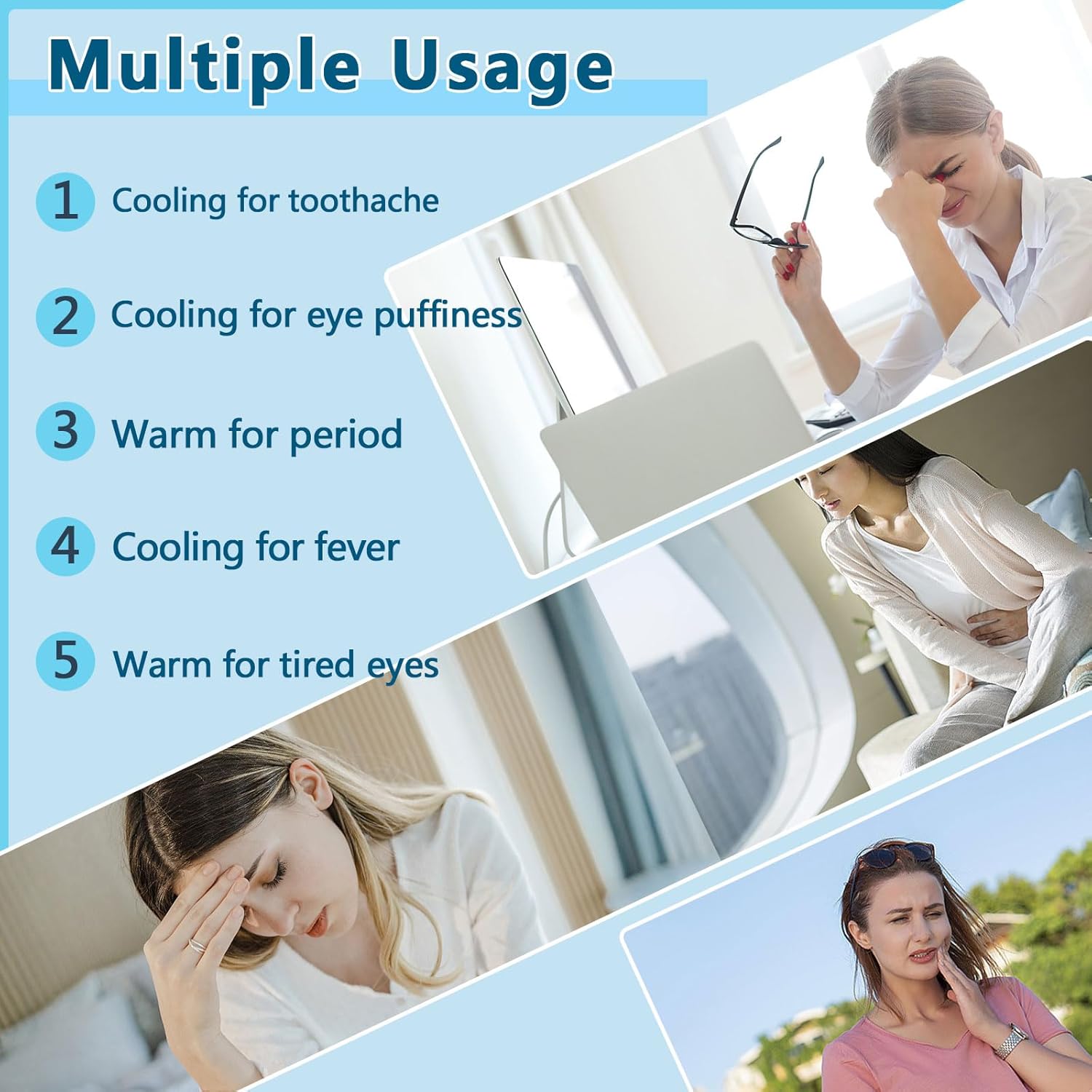 - 【Heated Eye Mask & Cooling Eye Mask 2 in 1】 Cooling eye masks: By just refrigerating the gel eye mask for 20-30mins and put it on your eyes, you will feel cool and relax in Summer. Heated eye mask: By soaking the gel eye mask in hot water (160°F-180°F) for 8-10mins and install it in the eye mask for sleeping, put on eyes and feel warm and comfortable in Winter. 【DO NOT PUT THE GEL EYE MASK IN THE FREEZER OVER 2HOURS,IT WILL BECOME HARD AND AFFECT TO USE, PLS CHILL IT INSTEAD OF FREEZE】
