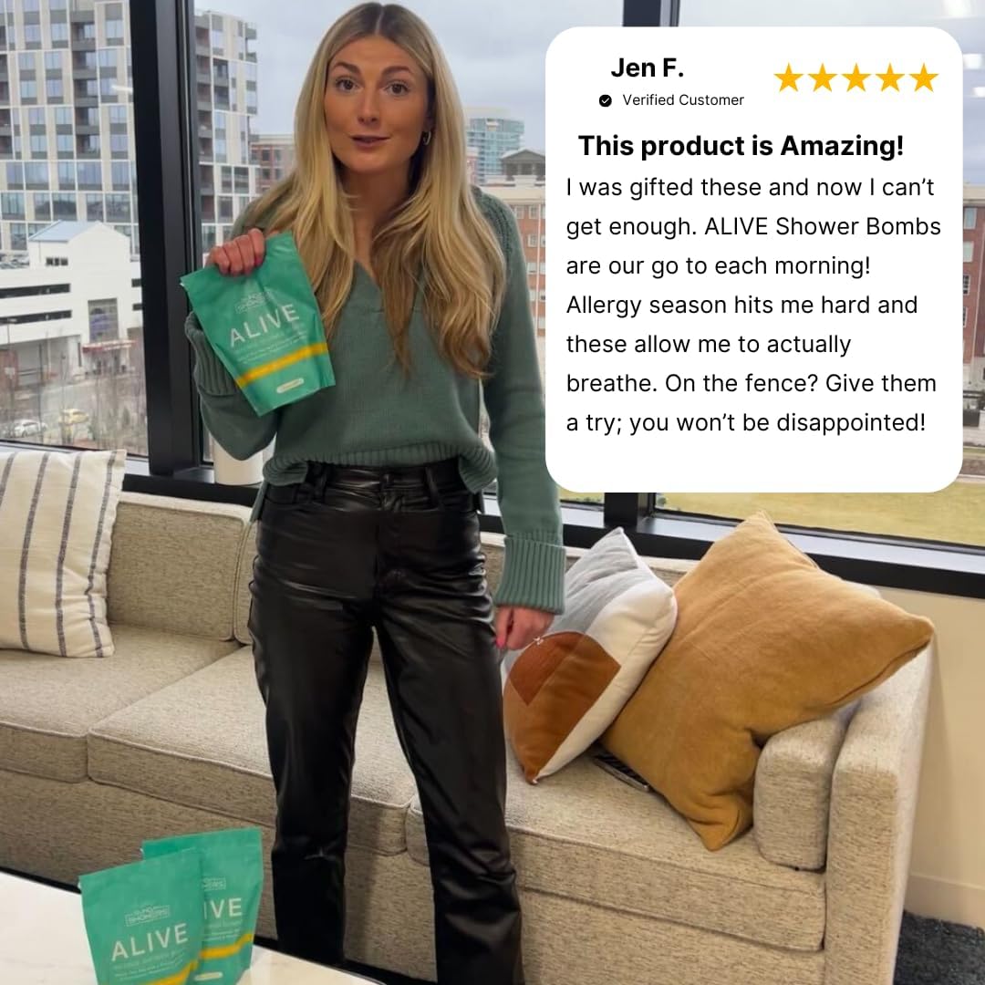 - 💨 INTENSE AROMATHERAPY EXPERIENCE Start your day sharp and refreshed with ALIVE — the strongest shower bomb on the market. Packed with 5X the menthol and essential oils for a bold, cooling vapor that transforms your shower into a mental reset.