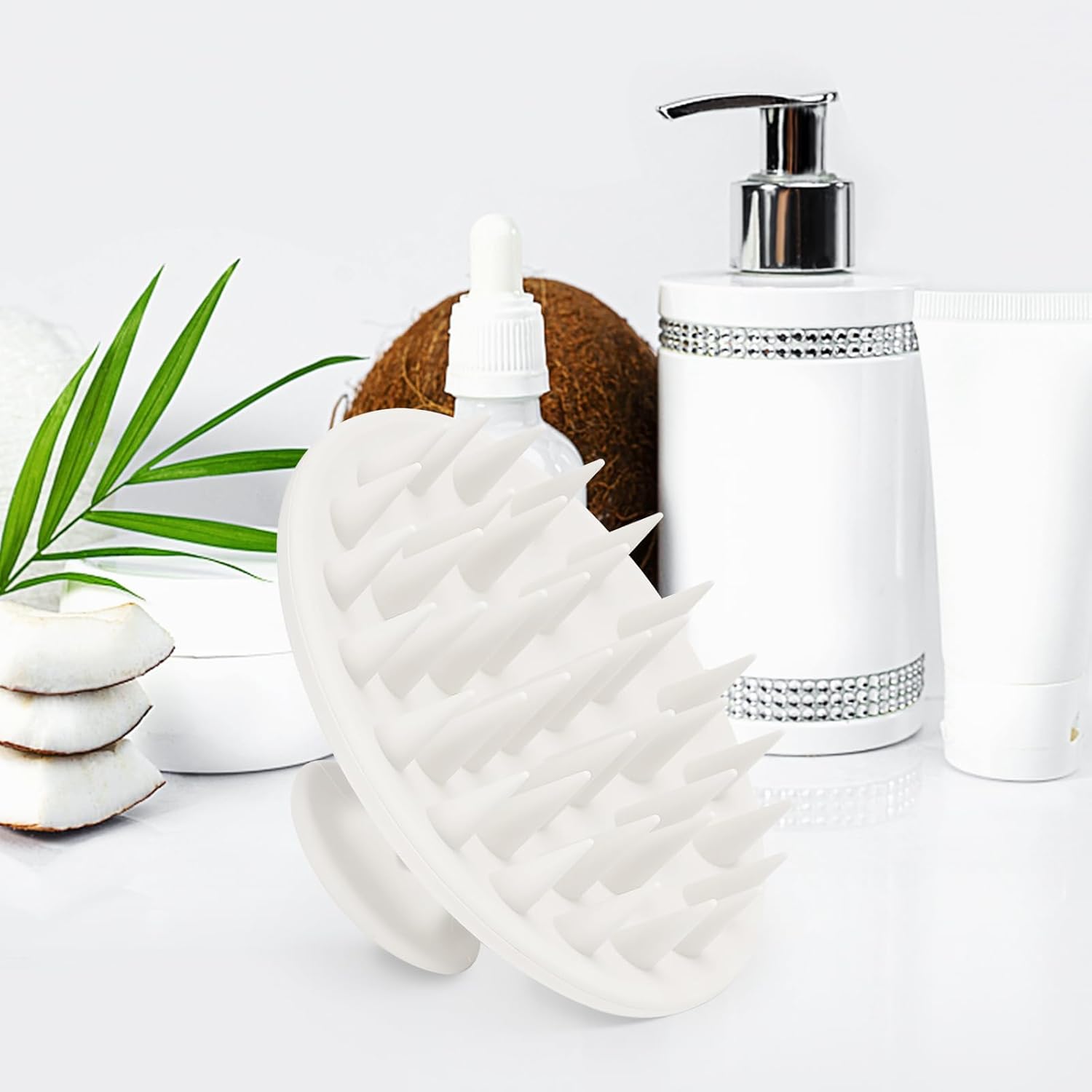 Silicone Scalp Massager Shampoo Brush, Scalp Brush for Hair Growth & Dandruff Removal, Hair Scrubber Scalp Stimulator Exfoliator Brush with Soft Bristles for Wet Dry Scalp Care (White)