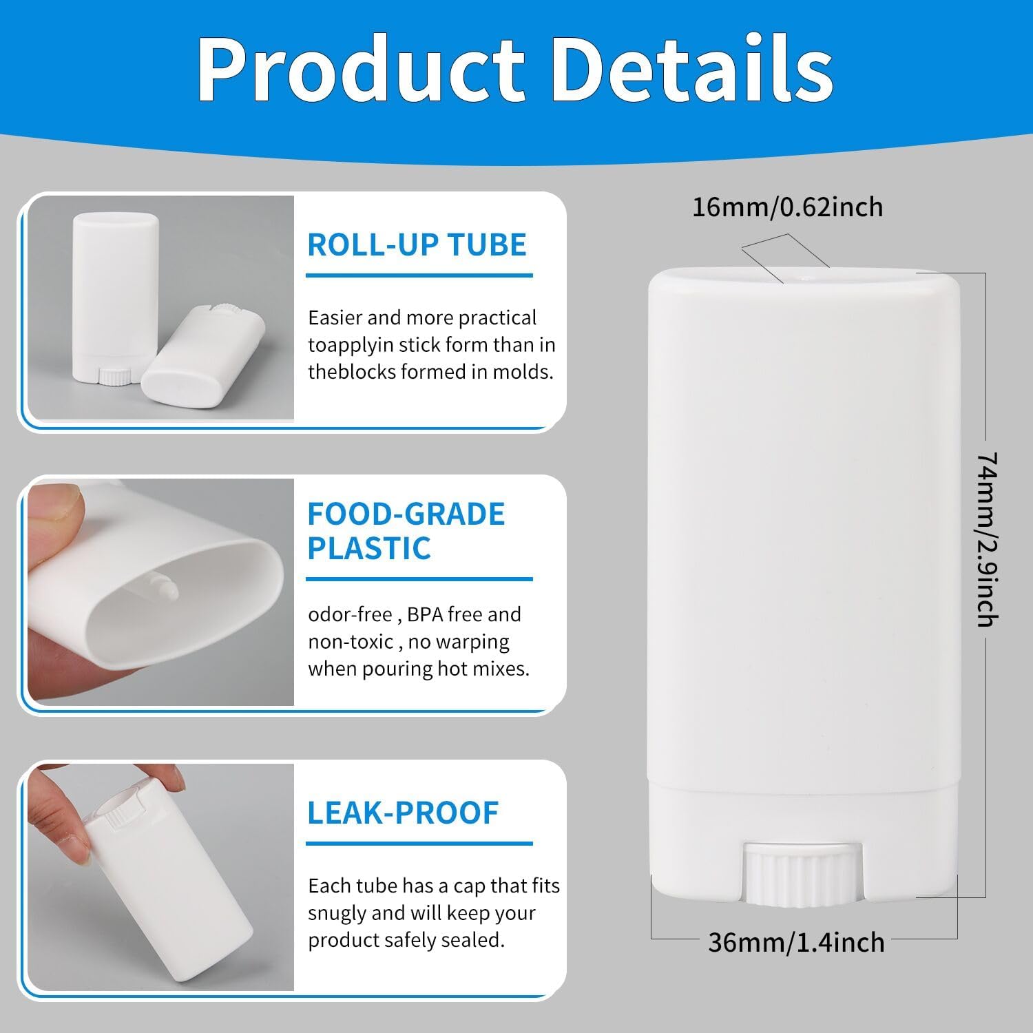 - Widely Use: Empty Oval Lip Balm Tubes refillable bottles are great for making your own deodorant at home, and they are perfect for deodorant, solid perfume and lip balm, etc. Gift yourself and loved ones artisanal goods made with wholesome ingredients. Solid transparent color containers easy for adding your own labels.