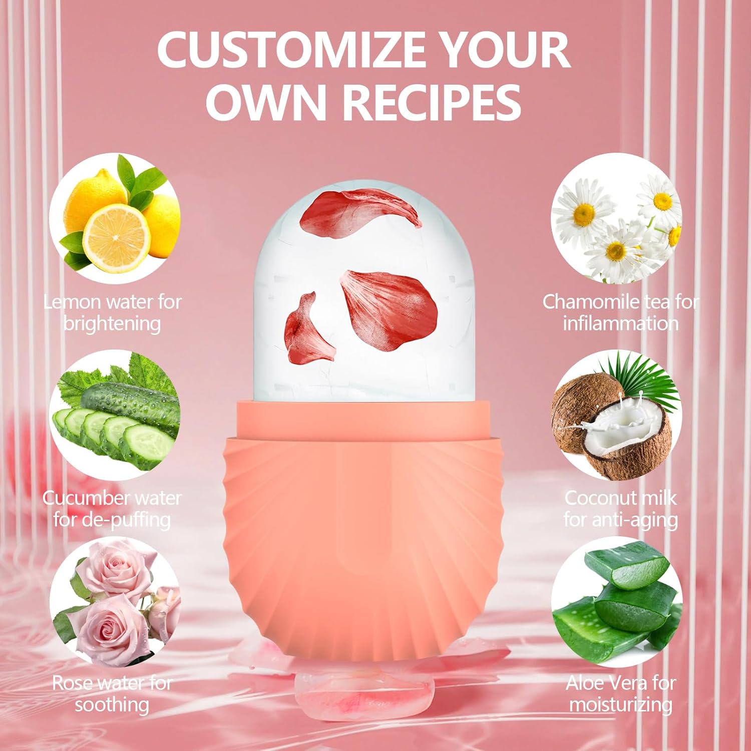 - Customize Preferences - Facial ice roller can enhance the skin care effect as per your creativity and customized formula according to your specific skin needs, such as coconut for improving skin. Even you can use a juicer to squeeze them into juice, then add water, and roses to the ice tray.