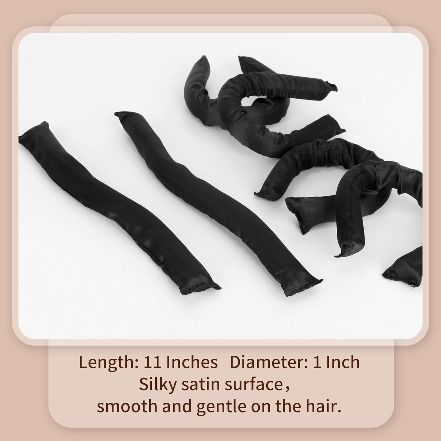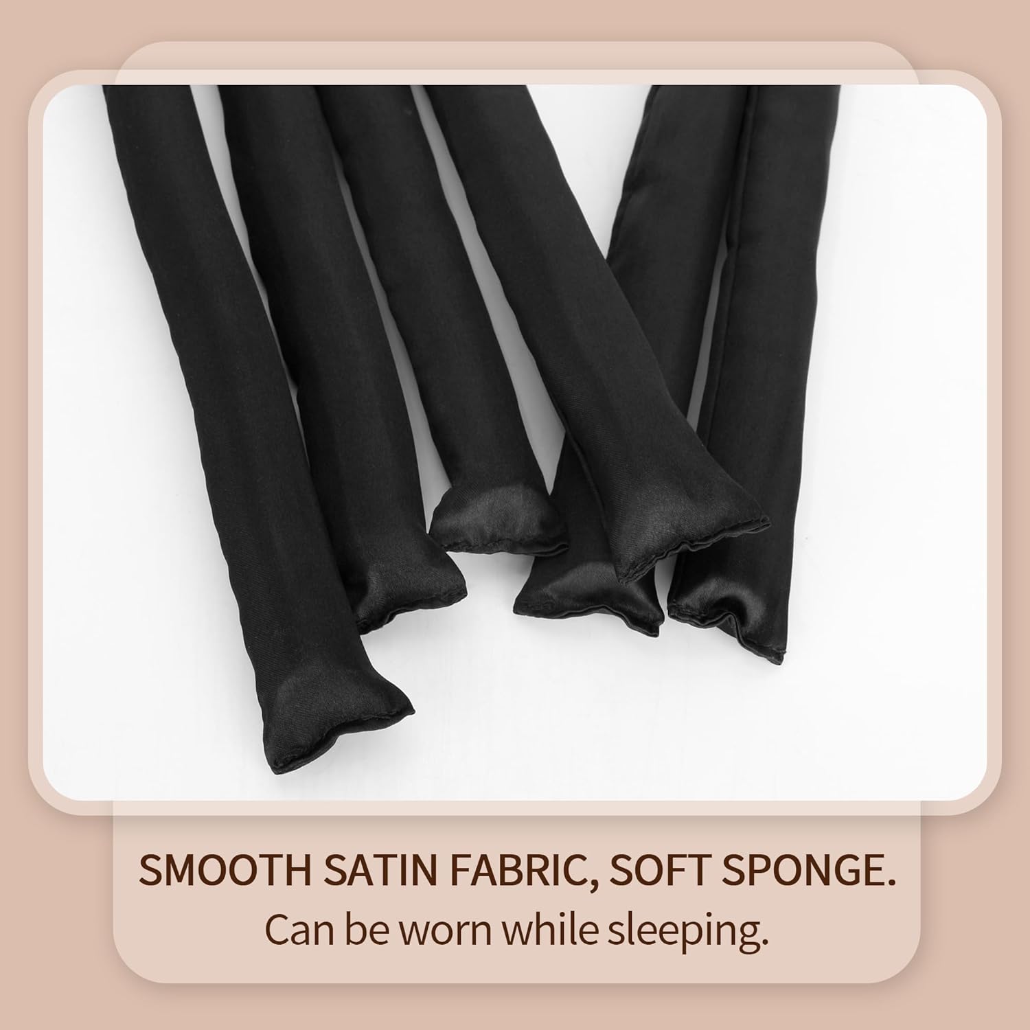 Black Satin Covered Heatless Overnight Curling Rods for Curls and Straight Short Hair - 6Pcs