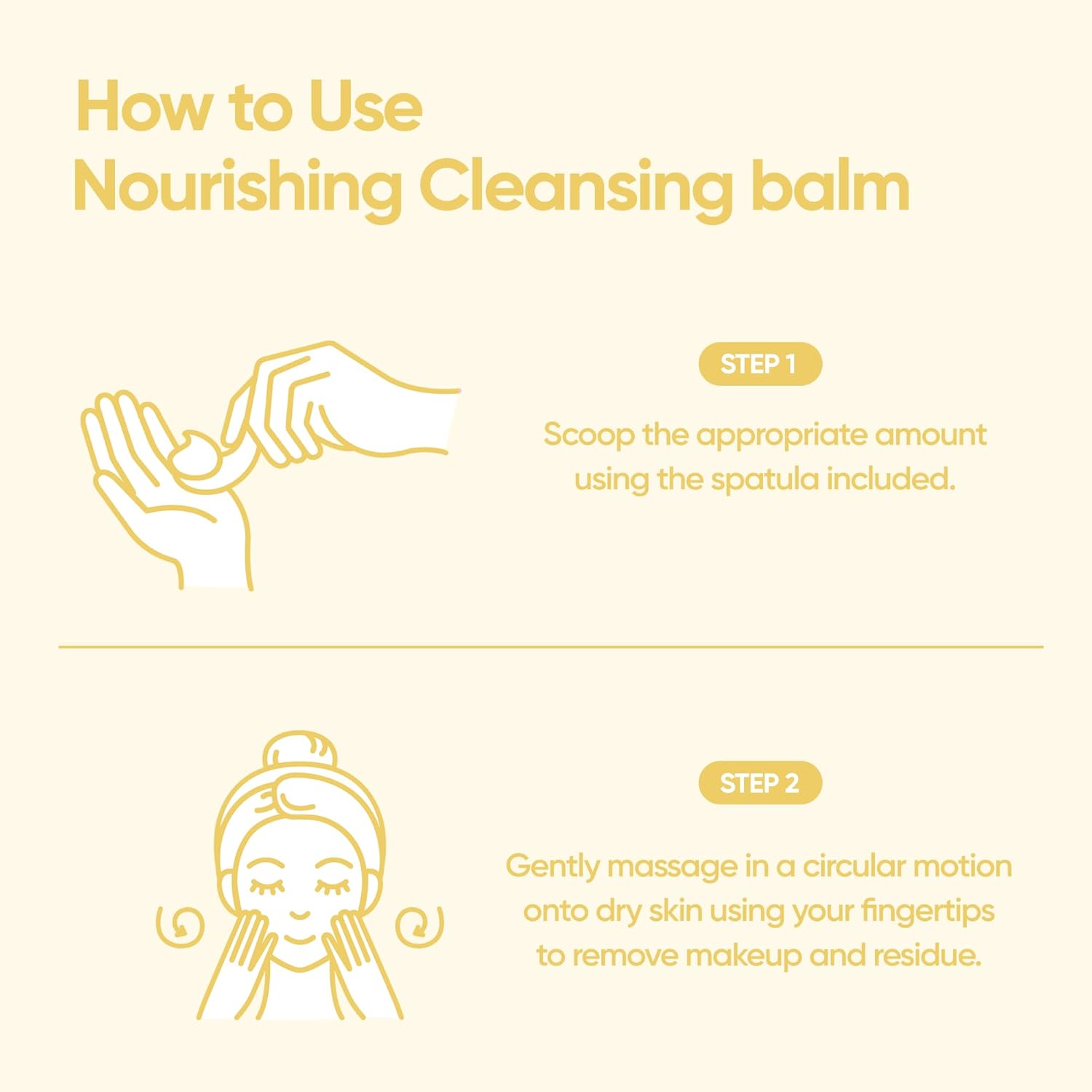 - How to Use📝 Scoop the appropriate amount using the spatula included. Gently massage in a circular motion onto dry skin using your fingertips to remove makeup and residue. Add water and massage further to emulsify the oil. Rinse well with lukewarm water.